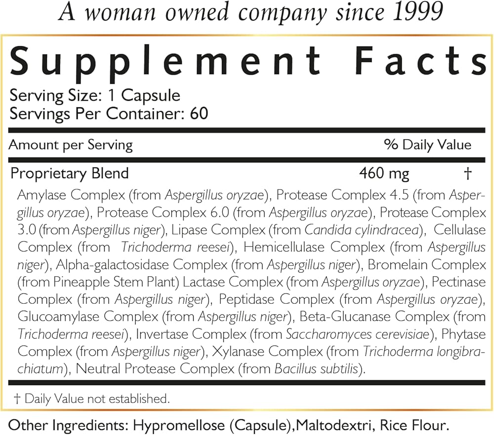 Aids Mineral Absorption: Contains a carefully chosen selection of digestive enzymes that increase nutrient absorption and decrease discomfort associated with enzyme deficiency.