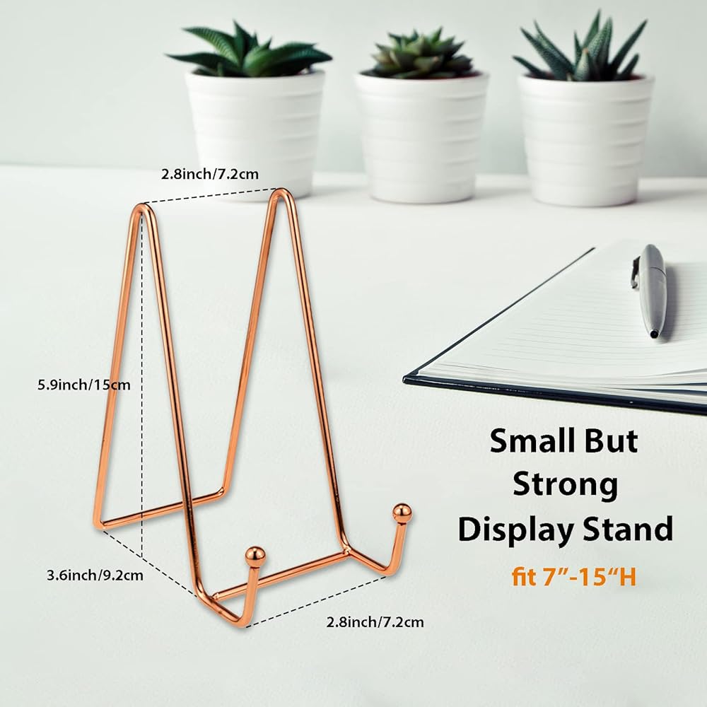 Size of Article It Can Hold- There are rose gold book display stand in the package which measure as 6 inch height. The 6 inches picture display stand for display, it fits for the item which the height/diameter from 7” to 15”.
