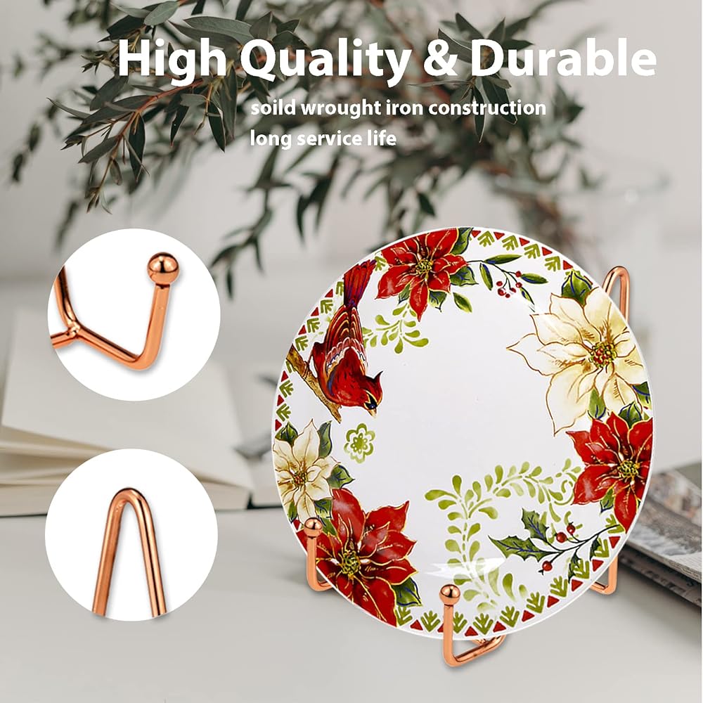 Premium Quality- The plate display stands are made of study and thick metal material for long-lasting use. The picture stand has a rose gold coated finish and wrought iron construction, strong enough to hold decorative plates. Never worry that your plate and photo frame will fall down or bend backward.