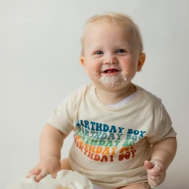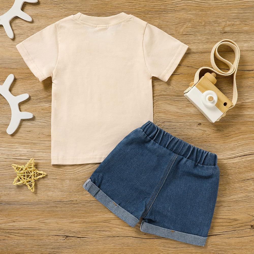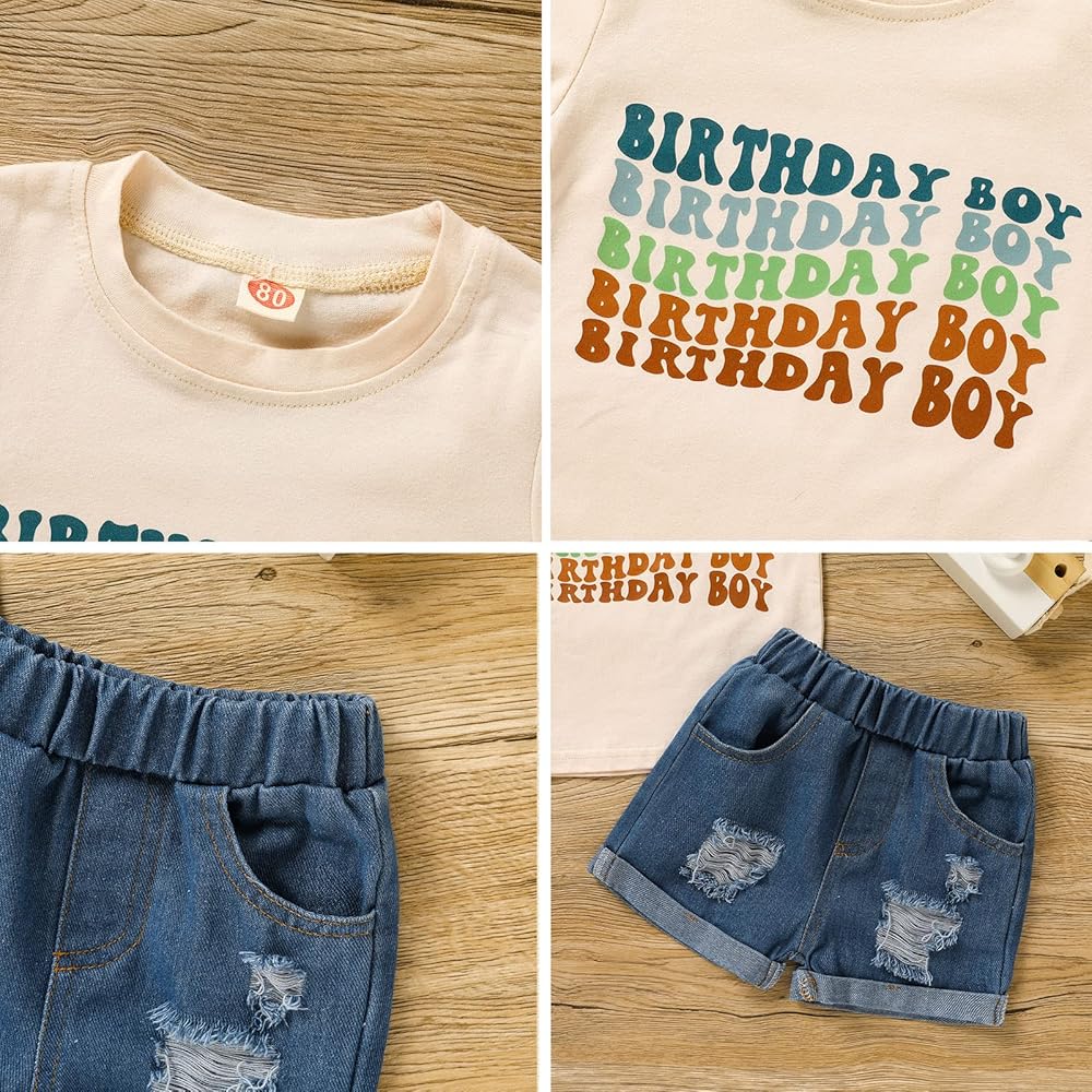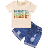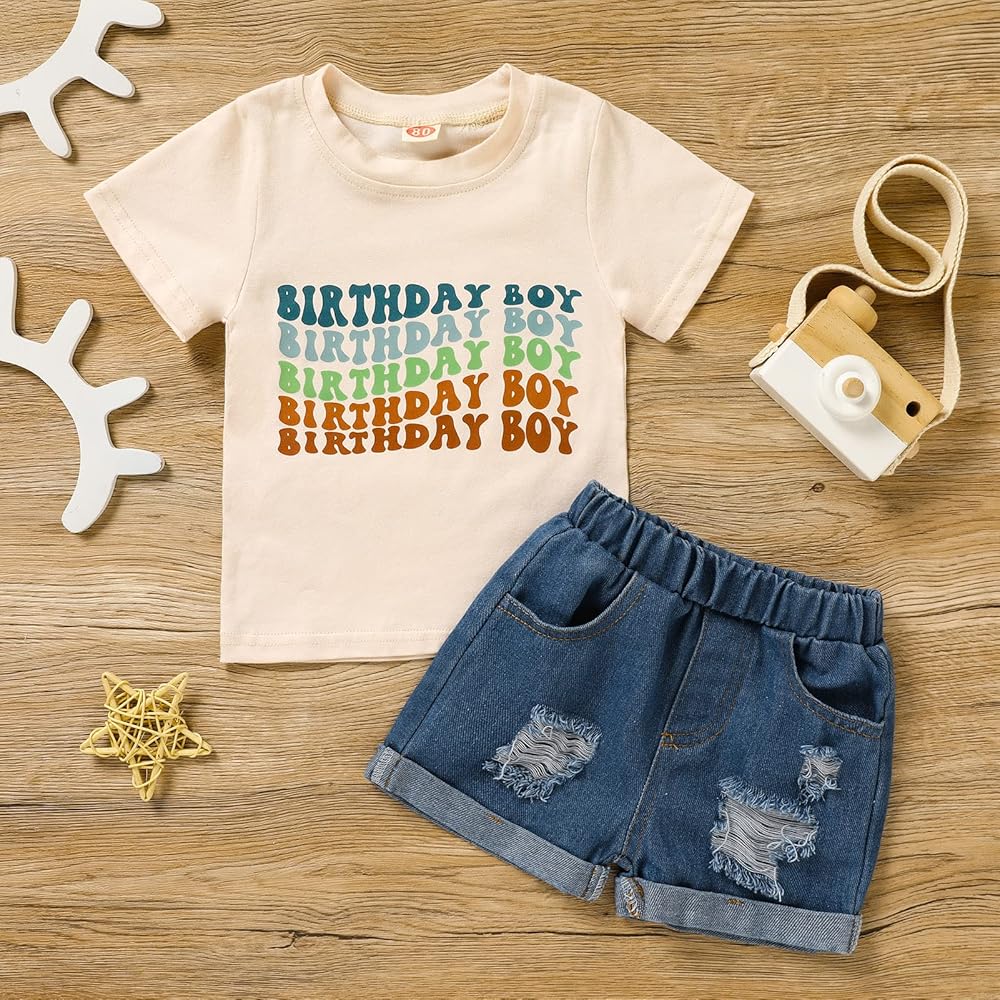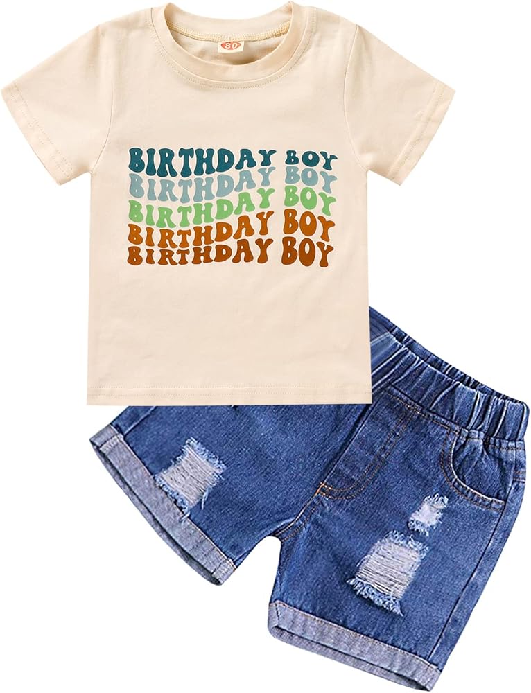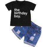 مجموعة ملابس Viworld The عيد ميلاد الصبي للأطفال الأولاد بأكمام قصيرة وقميص مطبوع عليه حروف من قماش الدنيم وبنطلون قصير على شكل كعكة سماش