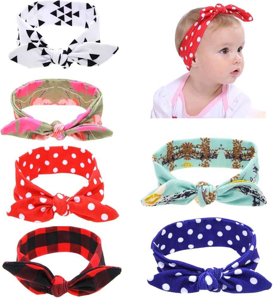 Design: Baby bandana headbands with fine handmade workmanship. Fashionable and pretty polka dot, plaids, triangle, flower print headwear. These chambray headbands will make children adorable and eye-catching. Soft and stretchy hair bands don't squeeze children's head.