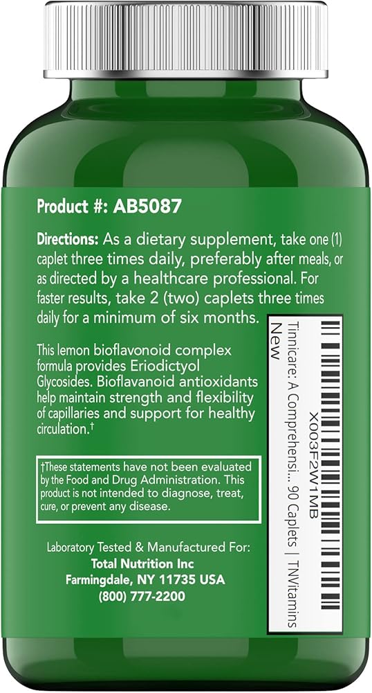 tnvitamins Tinnicare: تركيبة شاملة لتخفيف رنين الأذن مع بيوفلافونويد الليمون وفيتامين C وفيتامينات B1 وB2 وB6 وB12 | 90 كبسولة