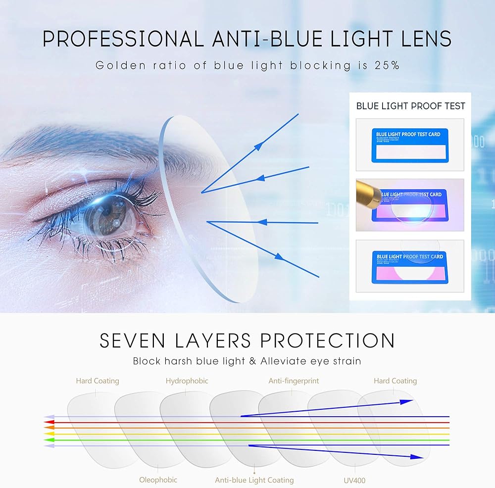 عدسة فلتر الضوء الأزرق: النسبة الذهبية لحجب الضوء الأزرق هي 25%، مما يخفف تمامًا من إجهاد العين من خلال العدسات الصفراء المربعة عند الاستمتاع بوقتك الرقمي.