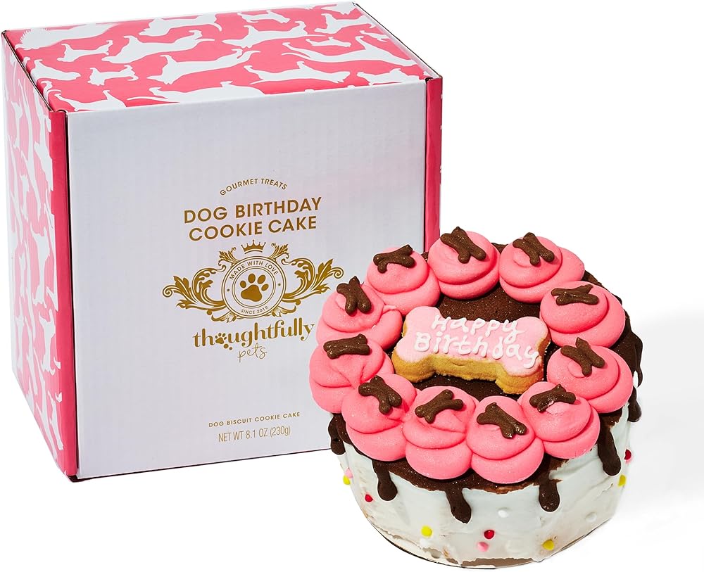 • كعكة عيد ميلاد صغيرة - هذه الكعكة البسكويت بنكهة زبدة الفول السوداني مقاس 2.75 بوصة ارتفاع × 4.25 بوصة عرض رائعة لأعياد ميلاد الكلاب