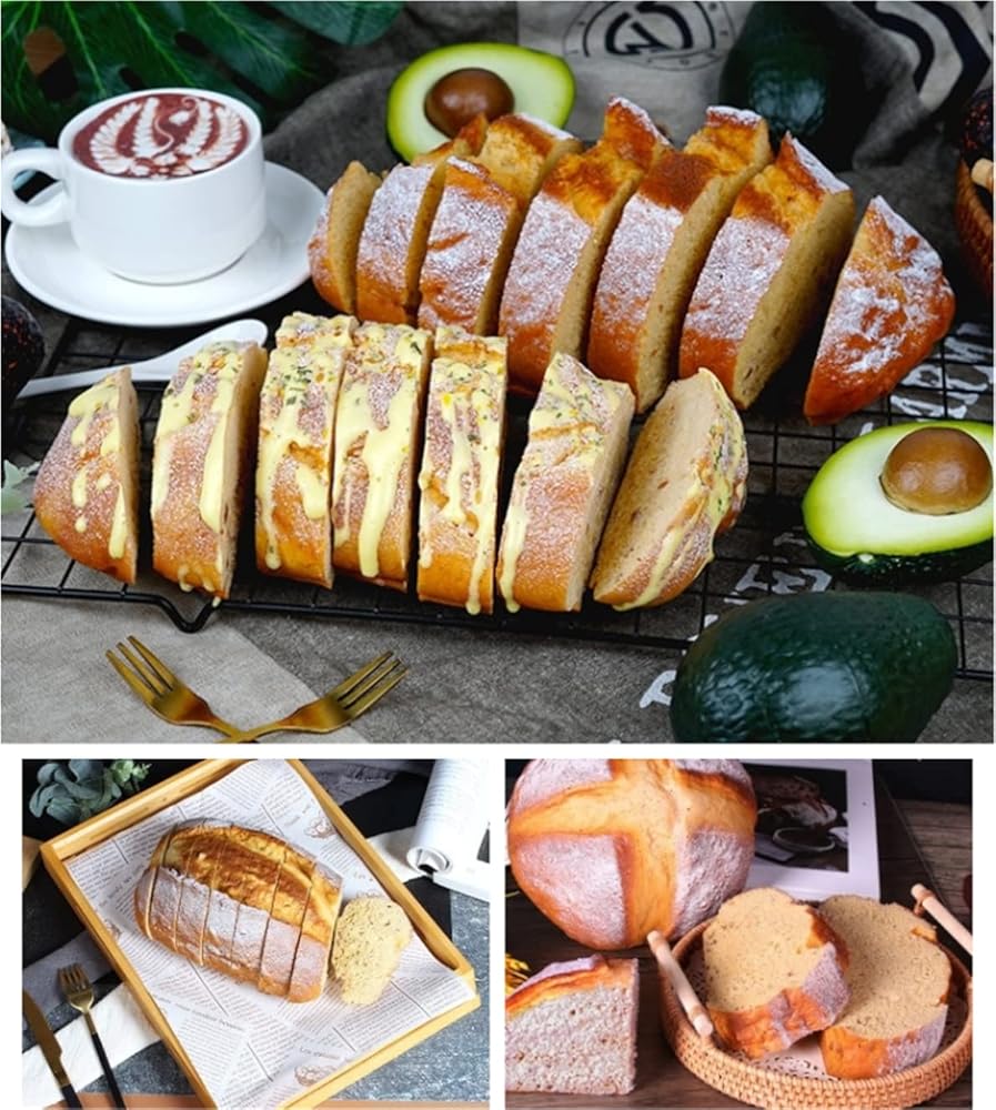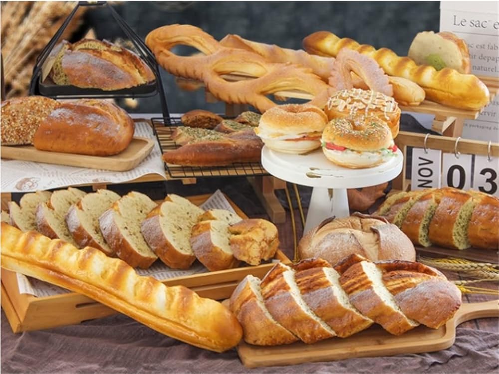 UXOWOXU قطعتان من الخبز المشطوف الاصطناعي لتزيين الخبز المخمر نموذج مخبز تصوير فوتوغرافي (ألم بلانك بيسان)