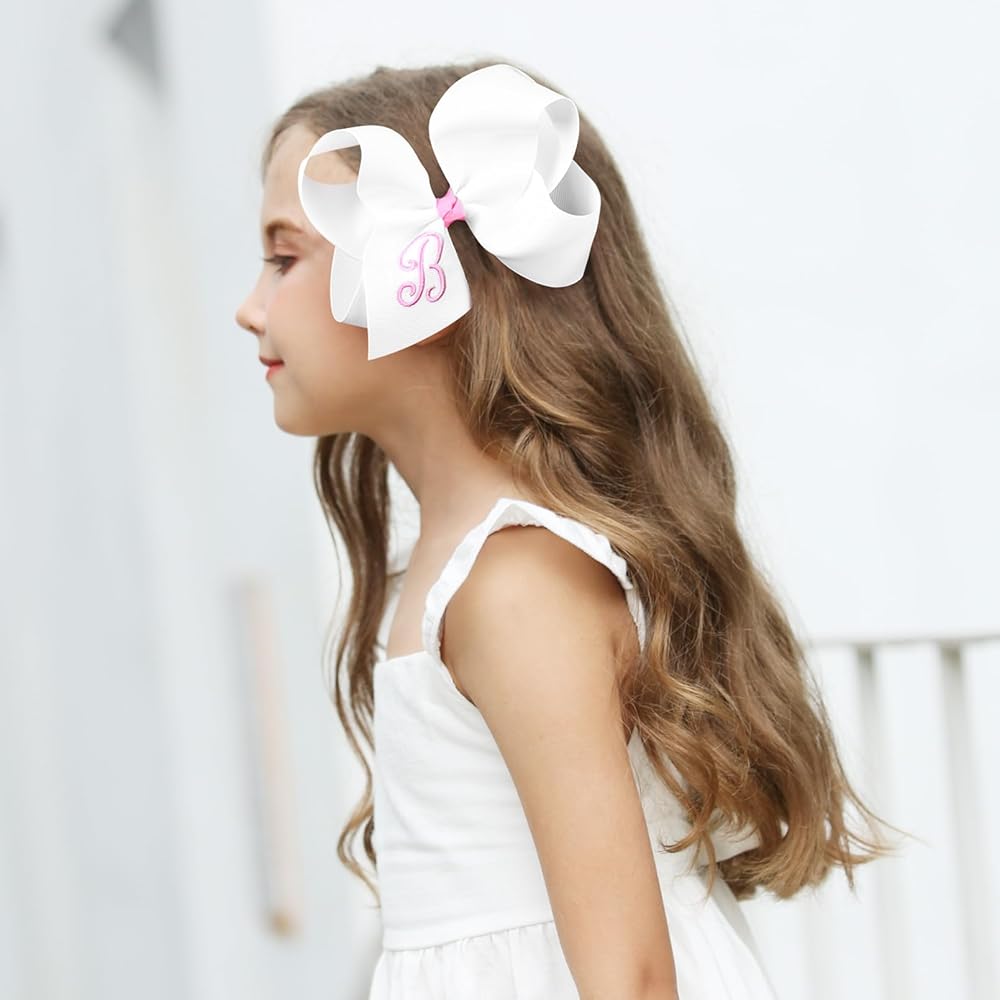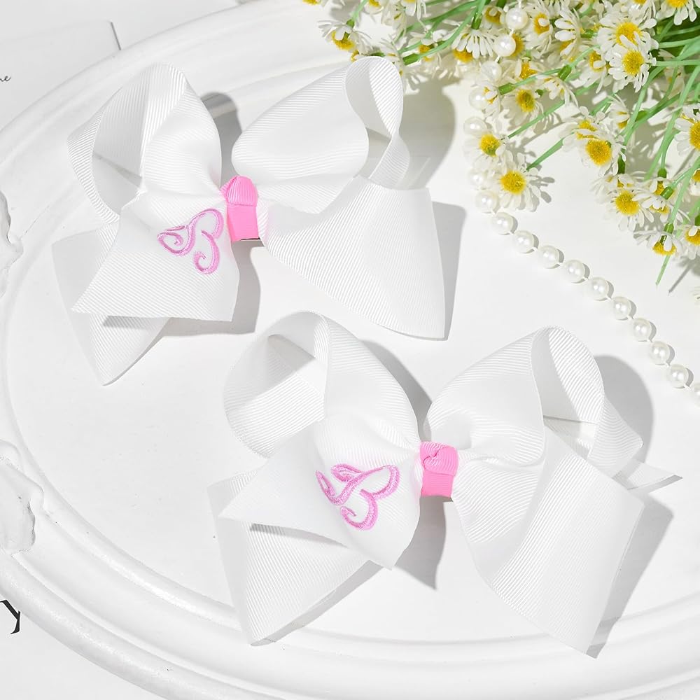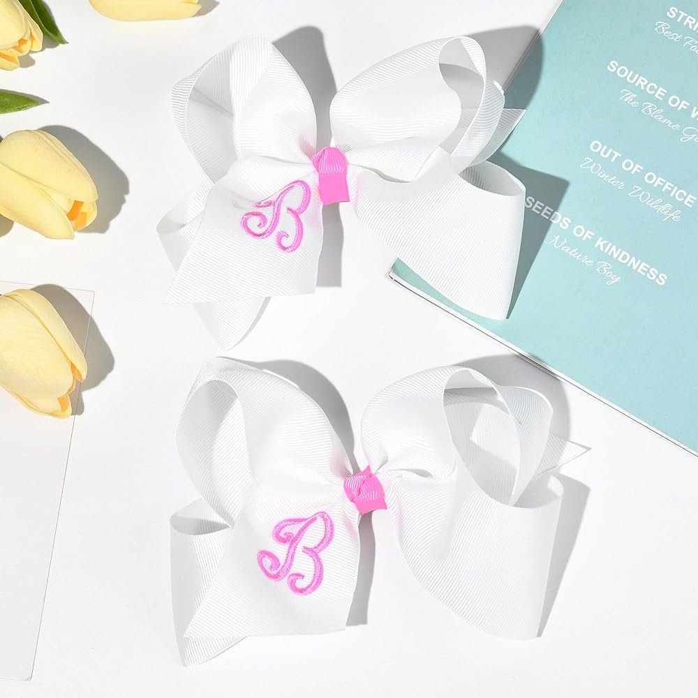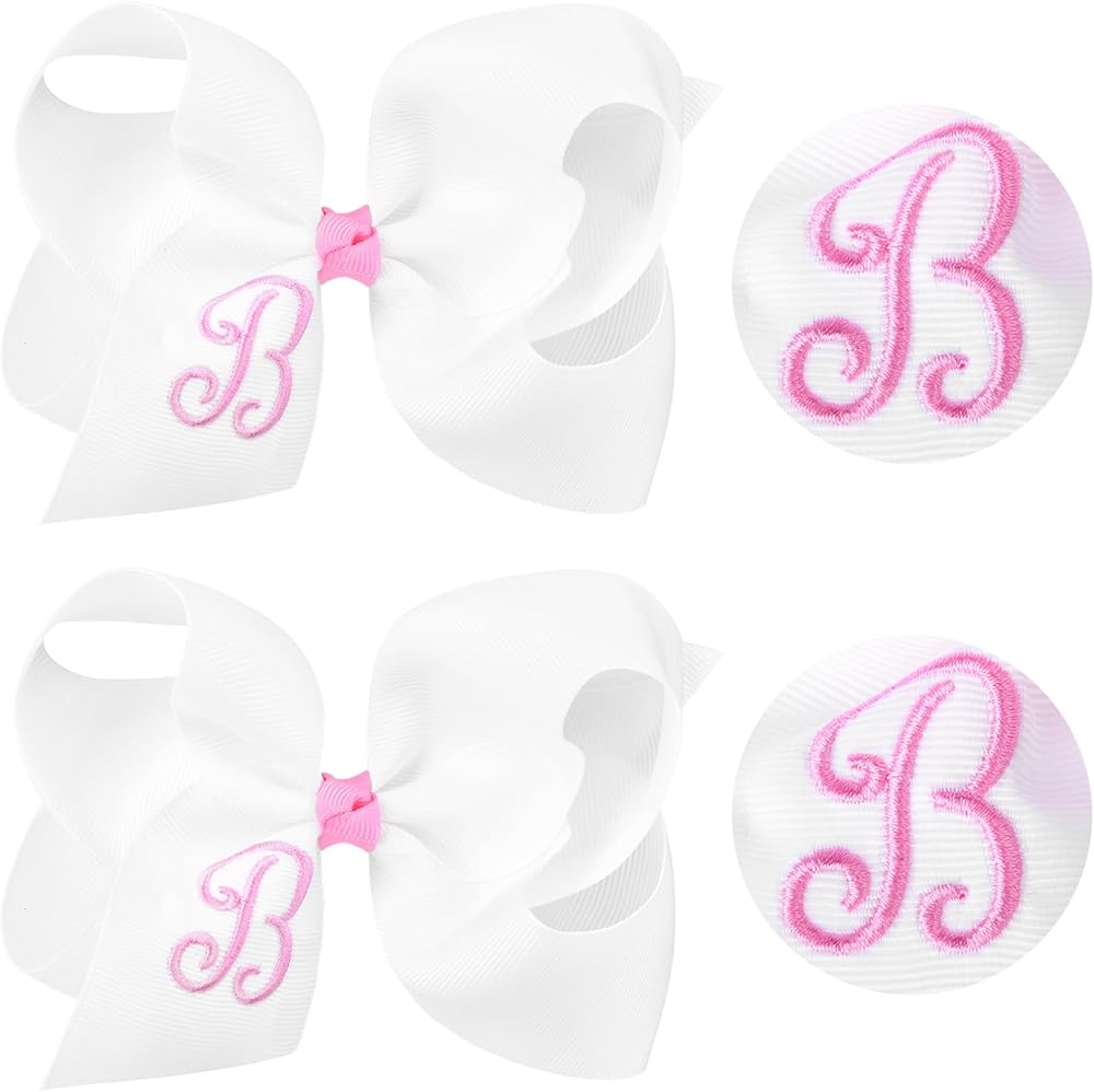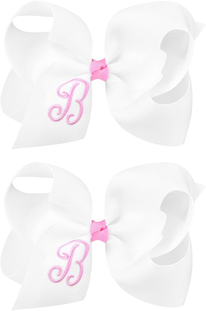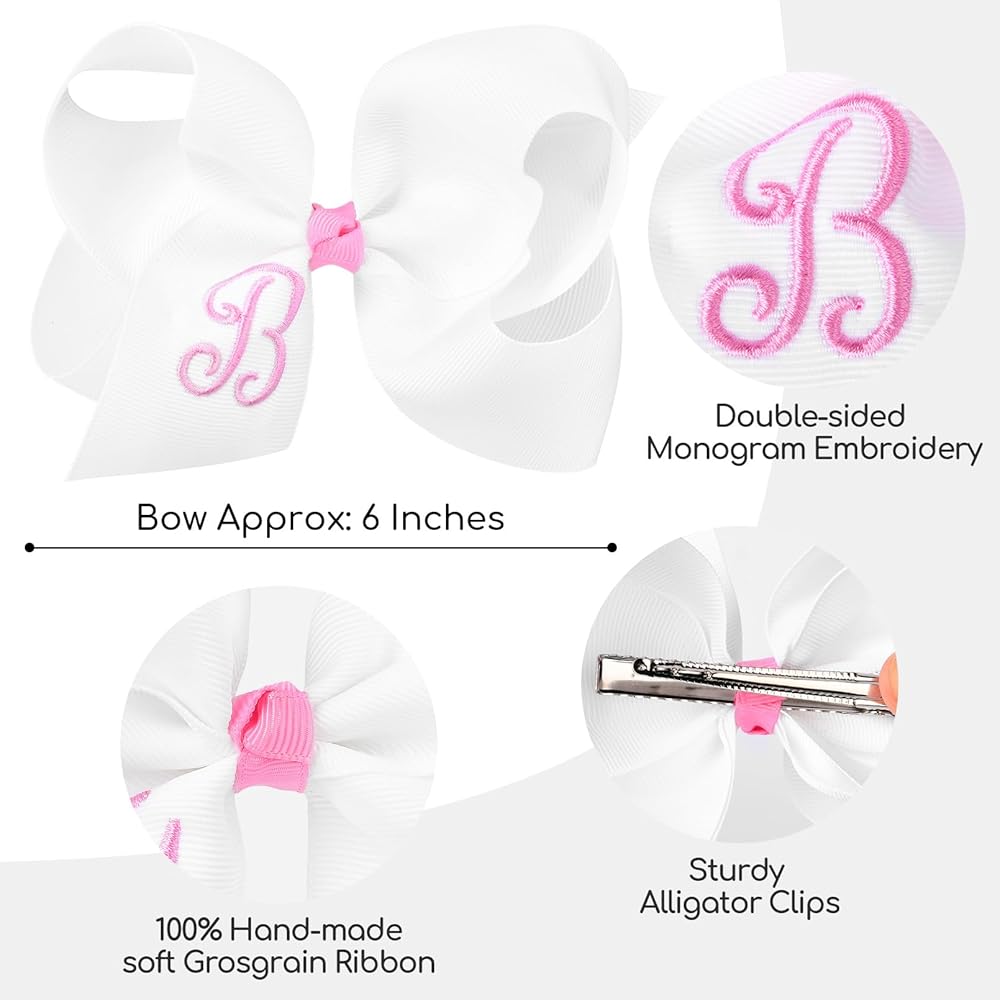 • What You Get- 2 monogrammed hair bows. You can choose the letter to match your girl's name. DEEKA Hair Bows are 6" across with a 2.2" alligator clip, using 2" grosgrain ribbon. Feel free to let us know the colors and letters you want but we don't have right now