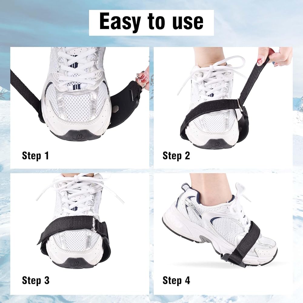 • REDUCE THE RISK OF A SLIP AND FALL INJURY: With metal spikes strategically positioned in the forefoot, the ice & snow grips digs into the ice to provide a reliable grip for zero falls while walking on snowy days. Widened silicone base for comfort while walking, it is an indispensable tool in winter.