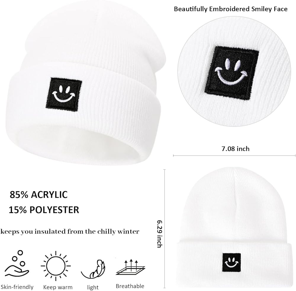 DANMY Baby Beanie Hat, Newborn Toddler Winter Warm Knit Hat with Smile face, Kids Soft Beanie Cap