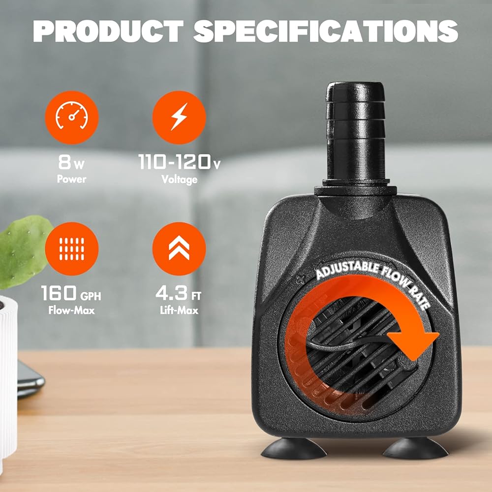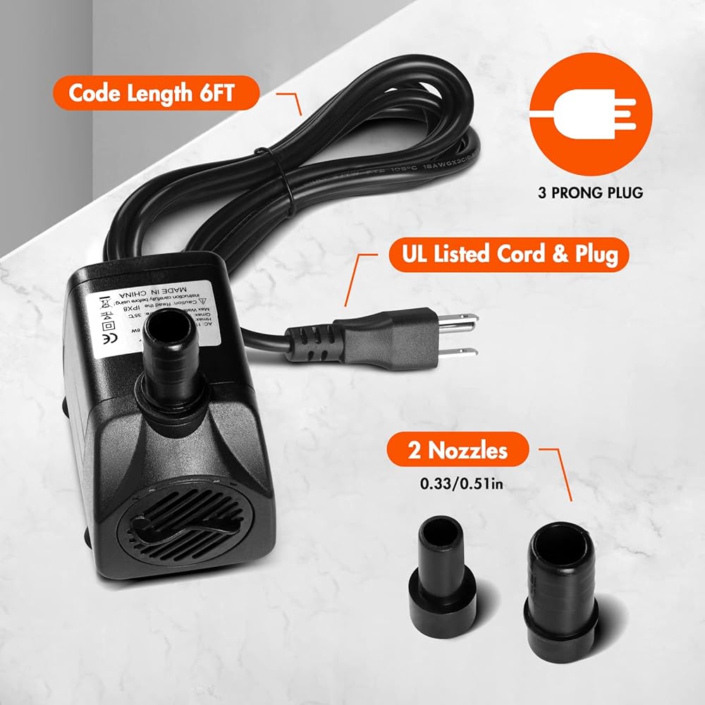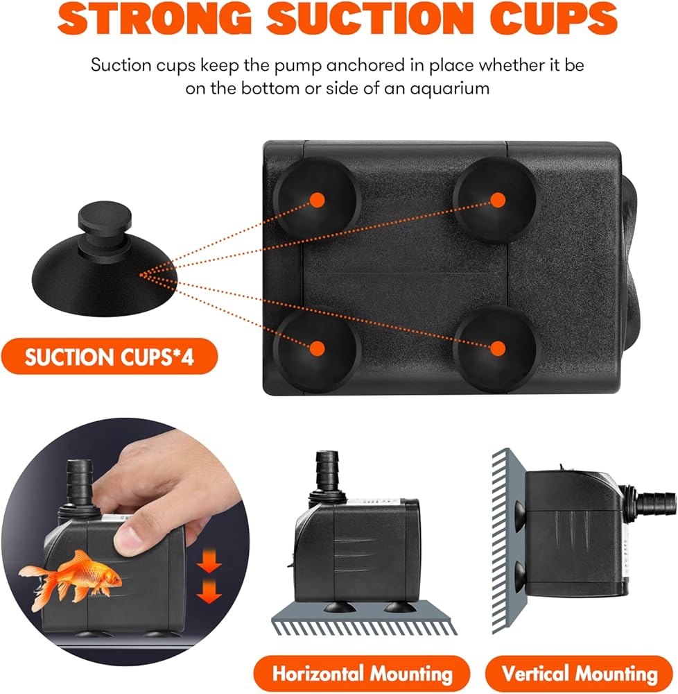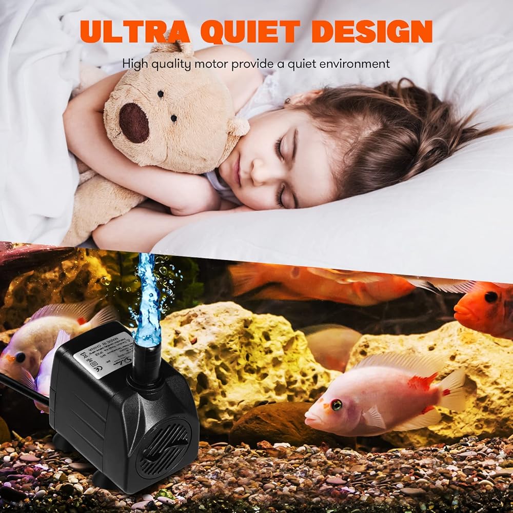 VERSATILE - Circulate and aerate the water, making it more attractive to your fish or turtles. This submersible pump is perfect for aquarium, fountains, spout and hydroponic systems