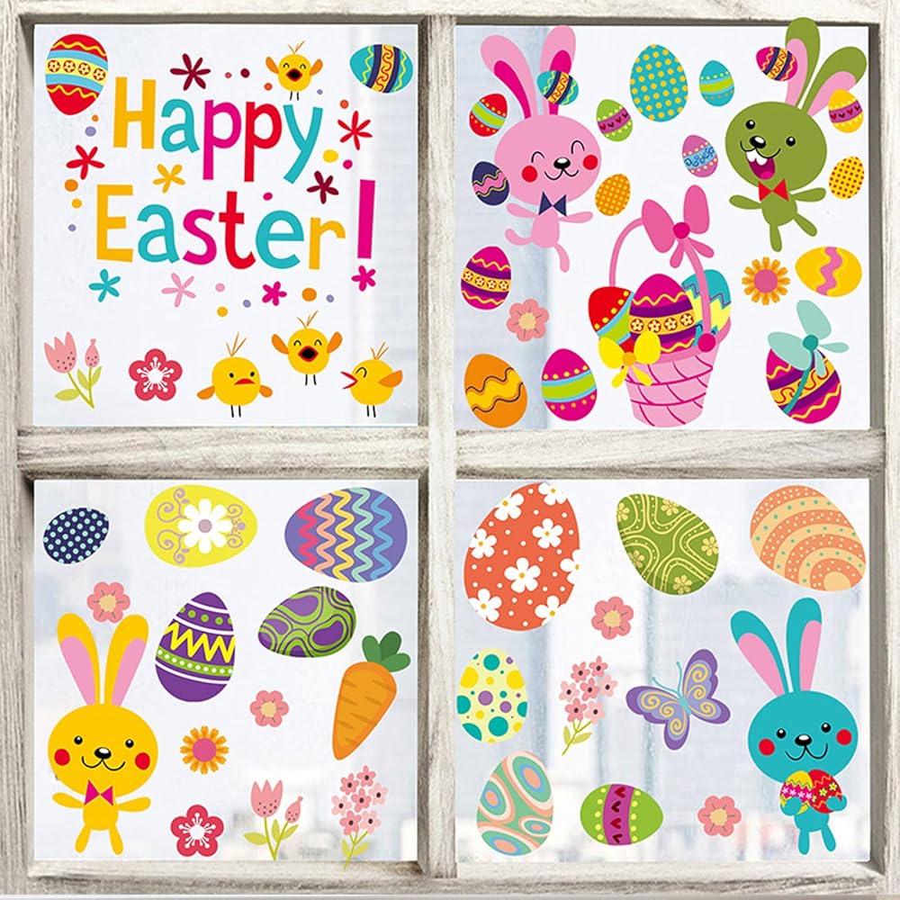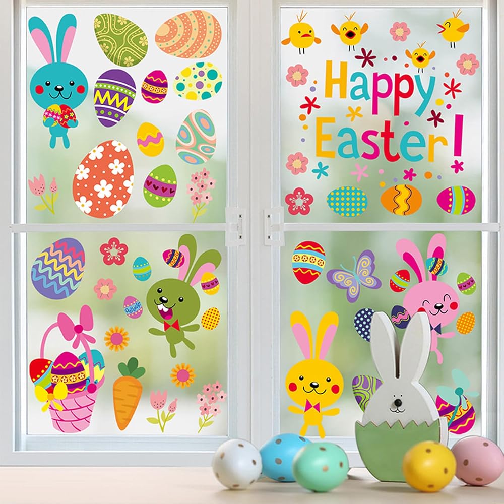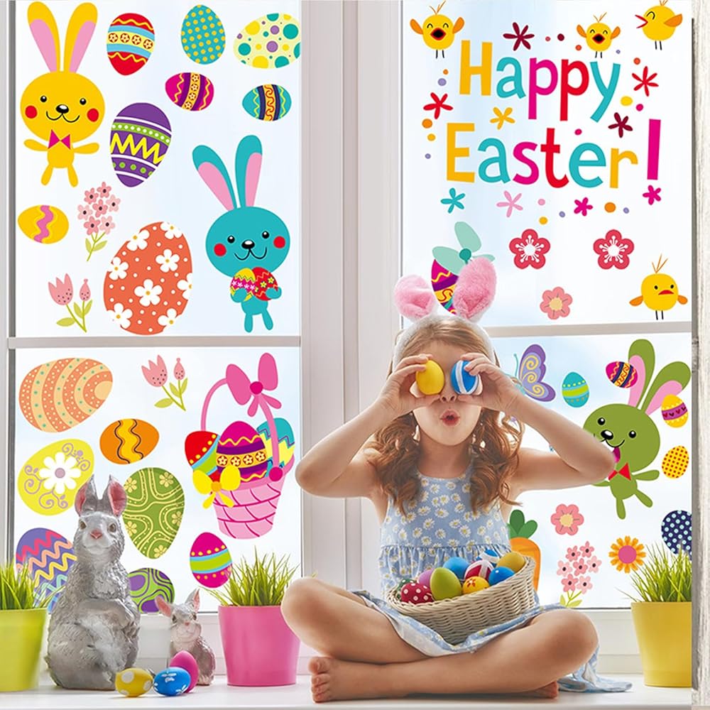 1…Happy Easter Decoration contain 83 Pcs (4 pieces ) Easter Window Clings , and so much quantity would meet your need for Easter window decoration to greatextend. Complement your Easter decor with these beautifully designed bunny, egg, carrot and some small petals window stickers.