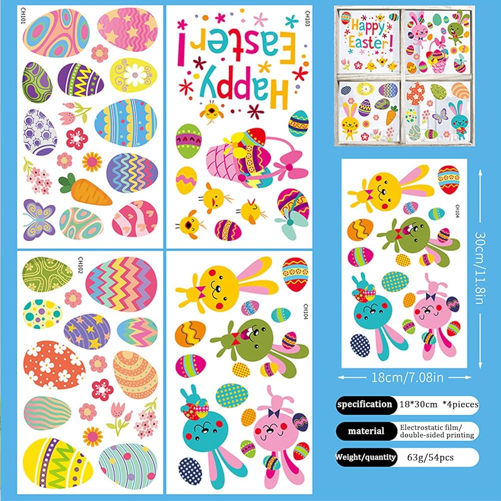5…Double Sided Easter spring window clingsoi9 for glass windows are suitable windows glass, fridge, mirror, whiteboard. which can easily be removed and don't leave any residue.