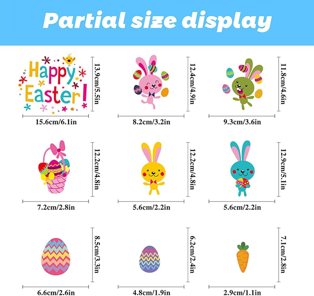 Happy Easter Decoration contain 83 Pcs (4 pieces ) Easter Window Clings , and so much quantity would meet your need for Easter window decoration to greatextend. Complement your Easter decor with these beautifully designed bunny, egg, carrot and some small petals window stickers.