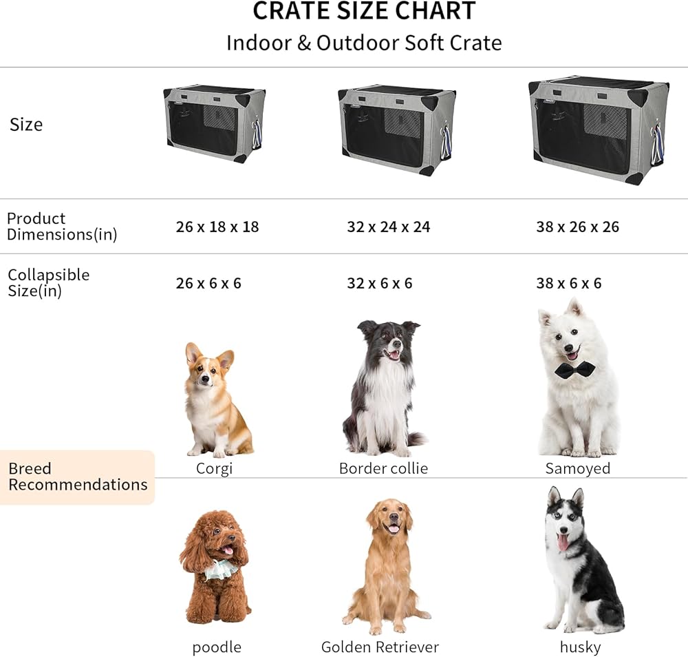 • أحجام مختلفة لجميع السلالات: بيت الكلاب الداخلي والخارجي متوفر بثلاثة أحجام لاستيعاب سلالات وأحجام مختلفة من الحيوانات الأليفة. اختر من بين S: 26''Wx18'Dx18''H (حتى 35 رطلاً)، M: 32''Wx24''Dx24''H (حتى 50 رطلاً)، وL: 38''Wx26''Dx26''H (حتى 70 رطلاً)، للعثور على المقاس المثالي لرفيقك المكسو بالفراء. مثالي للاستخدام في الهواء الطلق، يعتبر صندوق سفر الكلاب والقطط الصغيرة رائعًا للسفر معه.