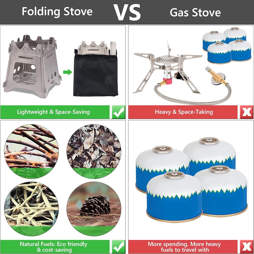 ✅【استخدم وقودًا صديقًا غير محدود】 ما عليك سوى استخدام الوقود من الطبيعة: الأغصان والأوراق والفروع والأخشاب وما إلى ذلك. لا حاجة لجلب وقود ثقيل ومكلف. دعم التزود بالوقود بالكحول (يشمل موقد الكحول).