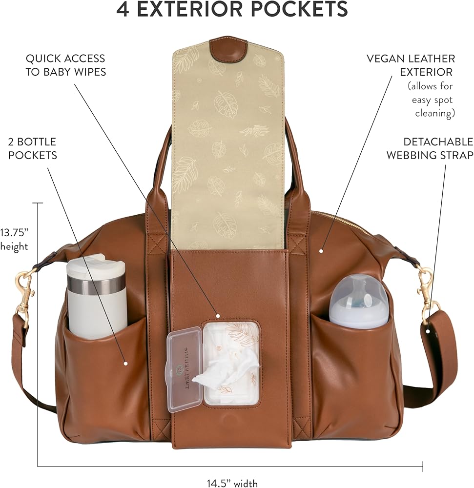 حقيبة حفاضات لسنوات قادمة: مصنوعة من جلد نباتي بنسبة 100%، تغطي حقيبة الحفاضات الأنيقة هذه جميع الاحتياجات الأساسية للأم أو الأب، ولا يزال من الممكن استخدامها لفترة طويلة بعد انتهاء مرحلة الحفاضات.