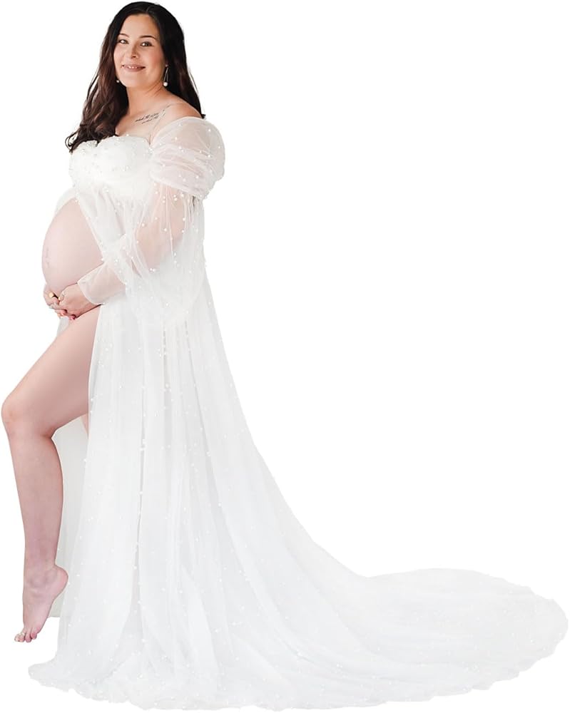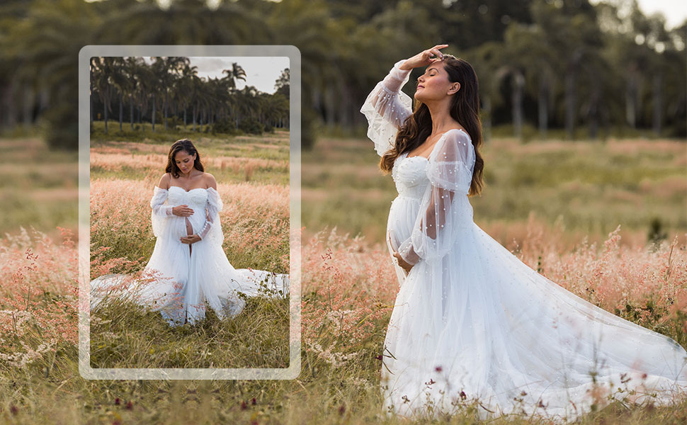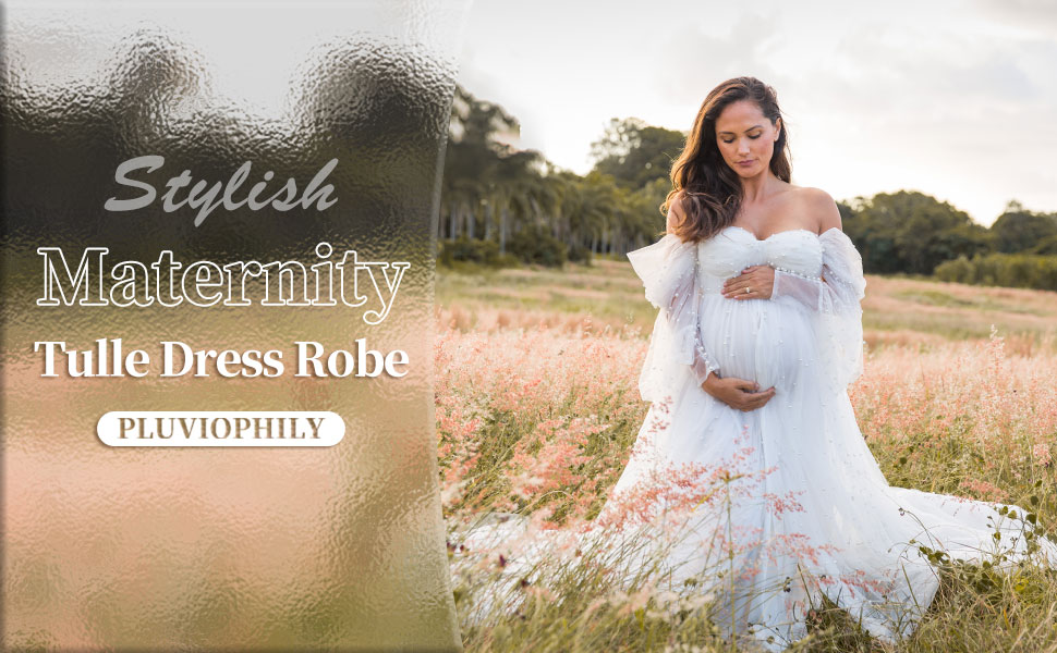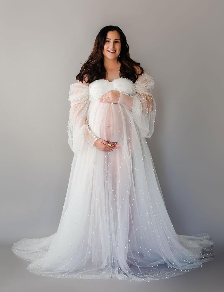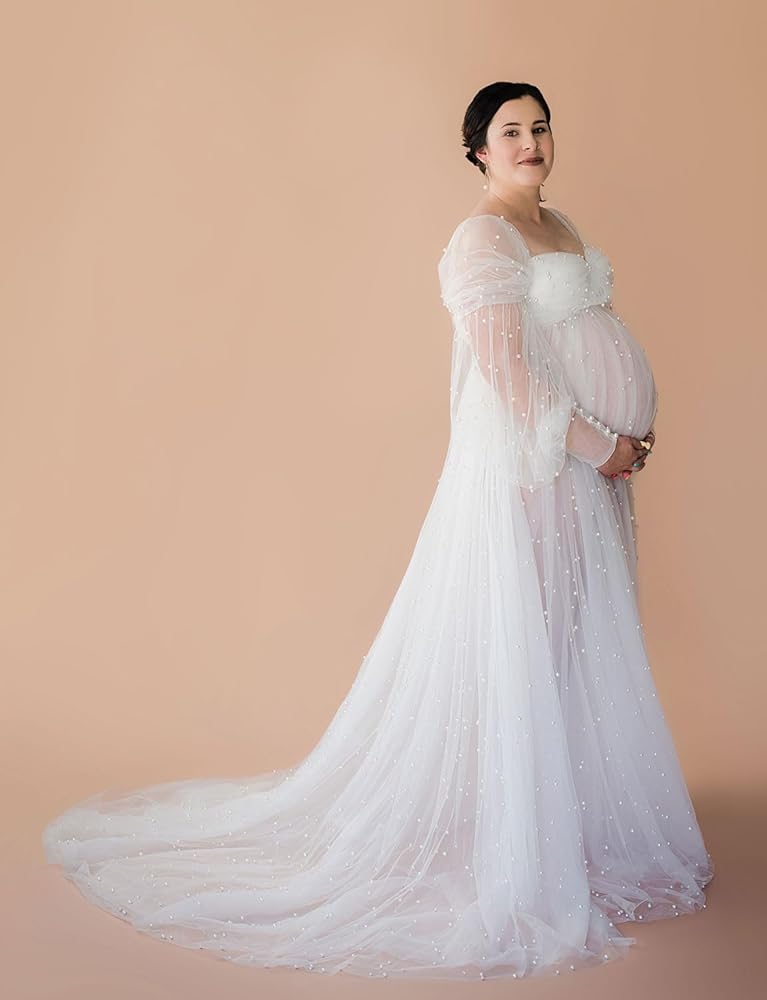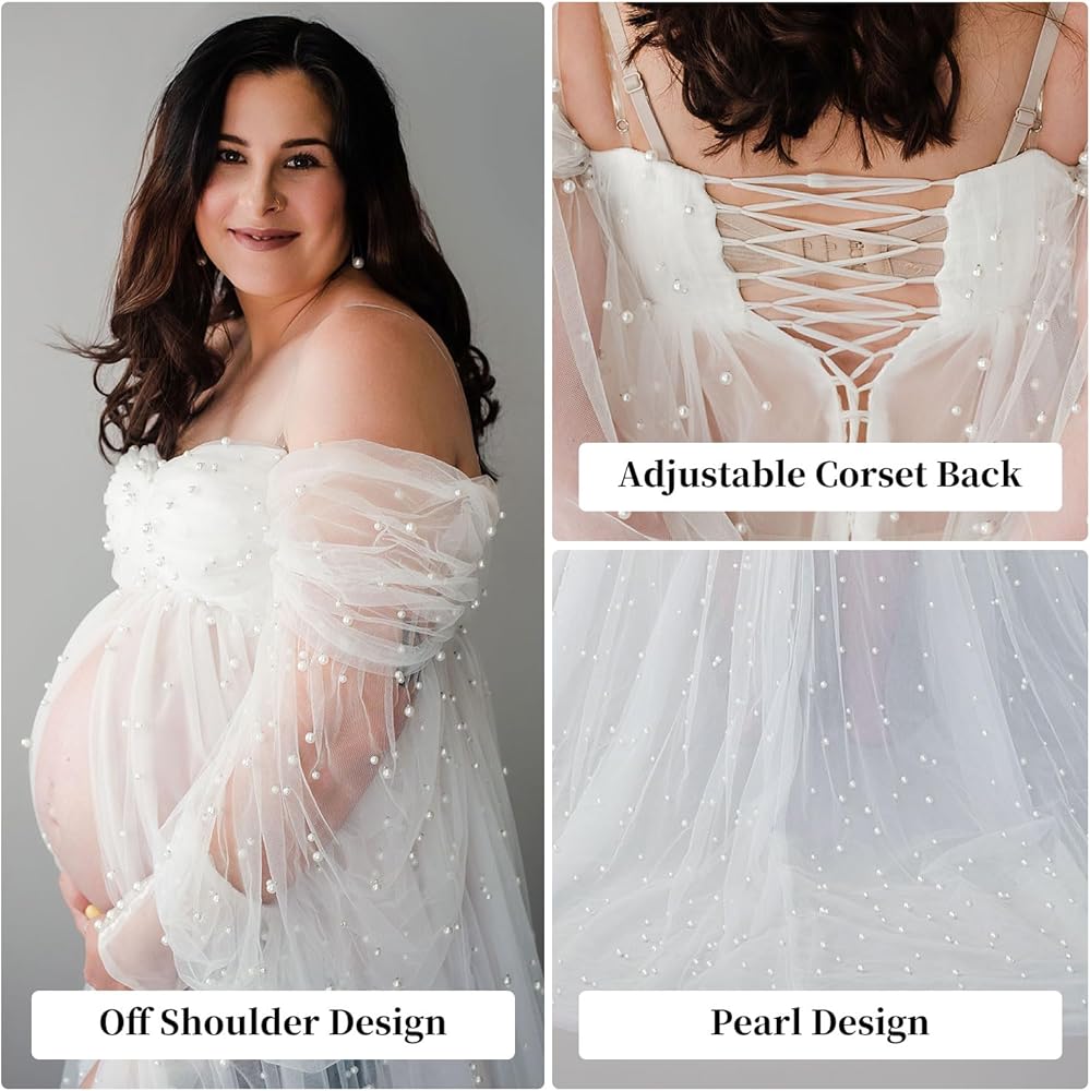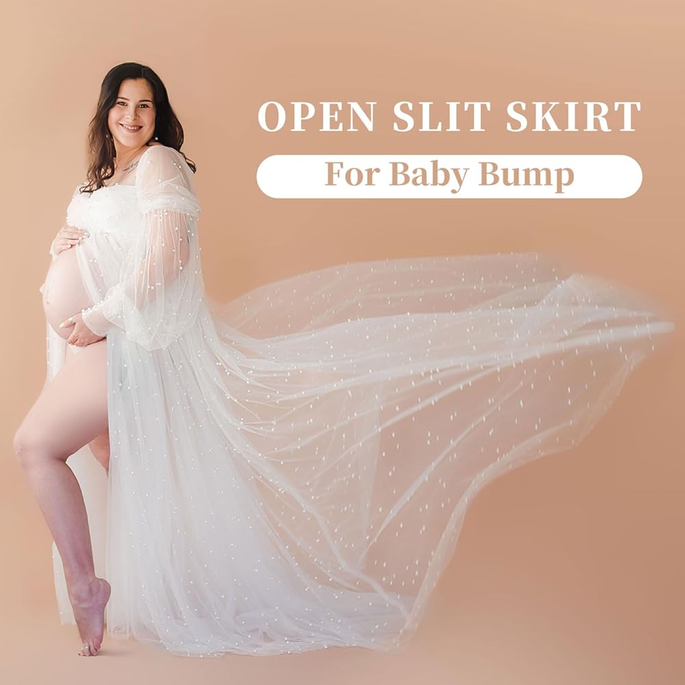 【جودة عالية】تصميم كلاسيكي لملابس الأمومة مع تول لؤلؤي عالي الجودة وبطانة ناعمة. 2 طرق لارتداء الأكمام متنوعة.