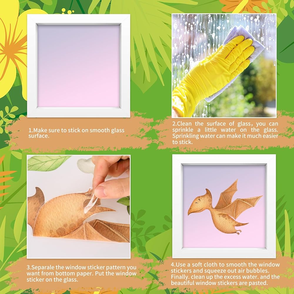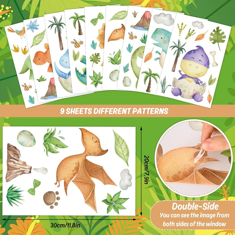 • تتضمن العبوة: 9 أوراق ملصقات نافذة بنمط ديناصور بتصميمات مختلفة، بكميات كافية لتلبية احتياجاتك المختلفة للزينة.