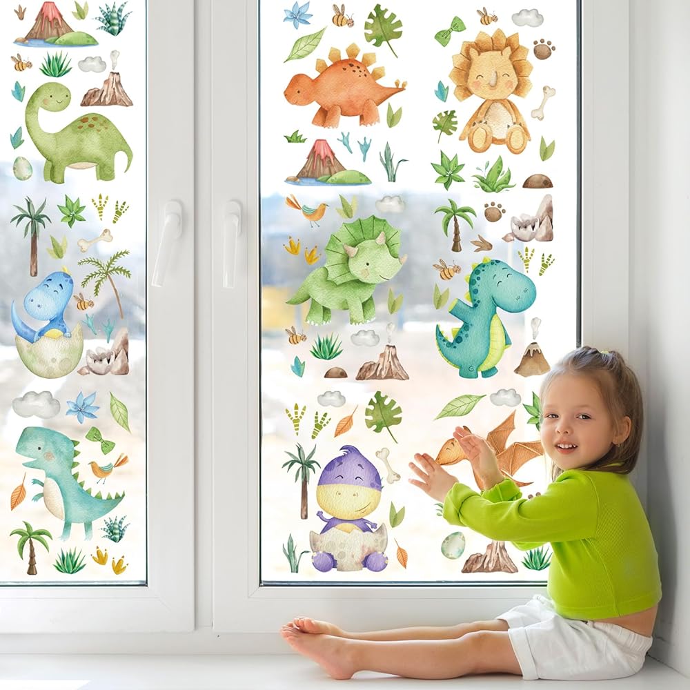 ملصقات نافذة الديناصورات ذات الألوان المائية الخاصة بنا نابضة بالحياة في المظهر، مطابقة الألوان النابضة بالحياة تجلب شعورًا ترفيهيًا كاملاً. يمكنها تلبية احتياجاتك لتزيين النوافذ.
