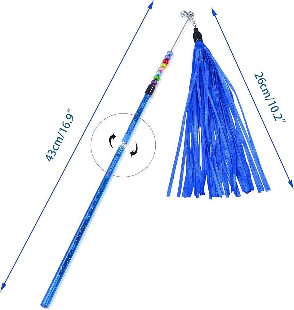 هذه عصا للقطط مصممة ومصنعة بواسطة شيوافا. لقد صنعنا عصا قطط قابلة للسحب مقاس 9.1 انش إلى 17 انش، سهلة التخزين والحمل. تصميم شراشيب من النايلون، أكثر قوة من الرقائق المعدنية والورق المعدني. تتضمن ثلاثة ألوان. أزرق، أحمر، أصفر. تصميم جرس وخرز ملون. تجذب المزيد من الاهتمام بحيوانك الأليف. ذيل ريش خفيف، يحفز معظم غرائز الصيد لدى قطتك. يمكن استخدامه للعب المستقل في الأماكن المغلقة، واللعب التفاعلي.
