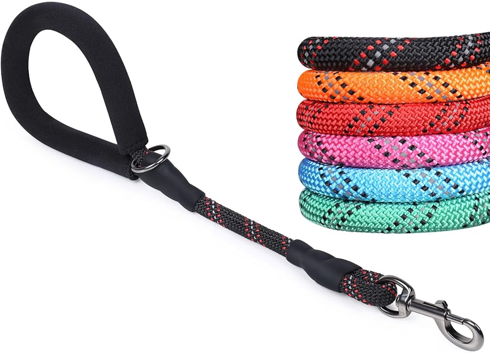 • 【حافظ على سلامة كلبك】مصنوع بحبل تسلق عالي الكثافة يبلغ قطره حوالي 1/2 بوصة مما يجعل المقود أقوى وأكثر ثباتًا، مقود متين وعالي الجودة مع خياطة معززة لتحقيق أقصى قدر من القوة! خيوط عاكسة في جميع أنحاء مقود الكلب تعزز الرؤية العالية لك ولعائلتك. الكلب عندما يضرب الضوء، مما يحافظ على سلامتك أنت وكلبك في ظروف الإضاءة المنخفضة