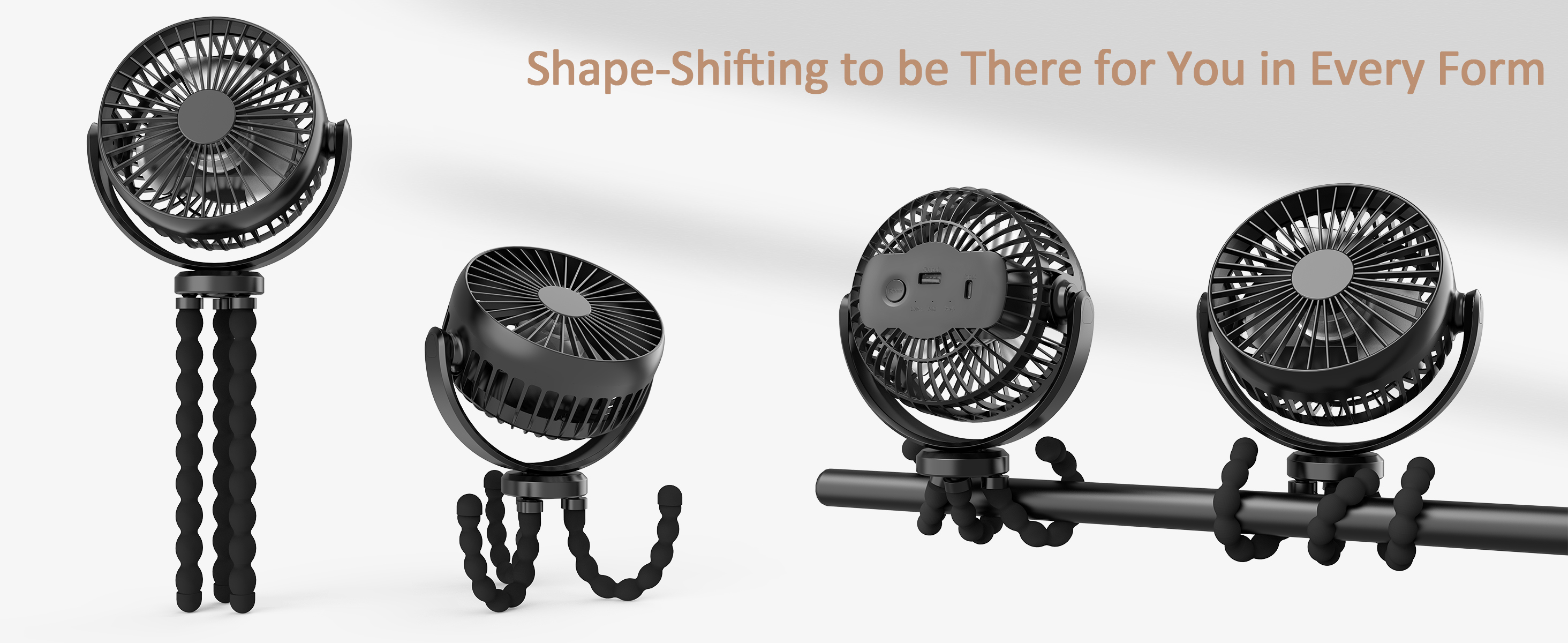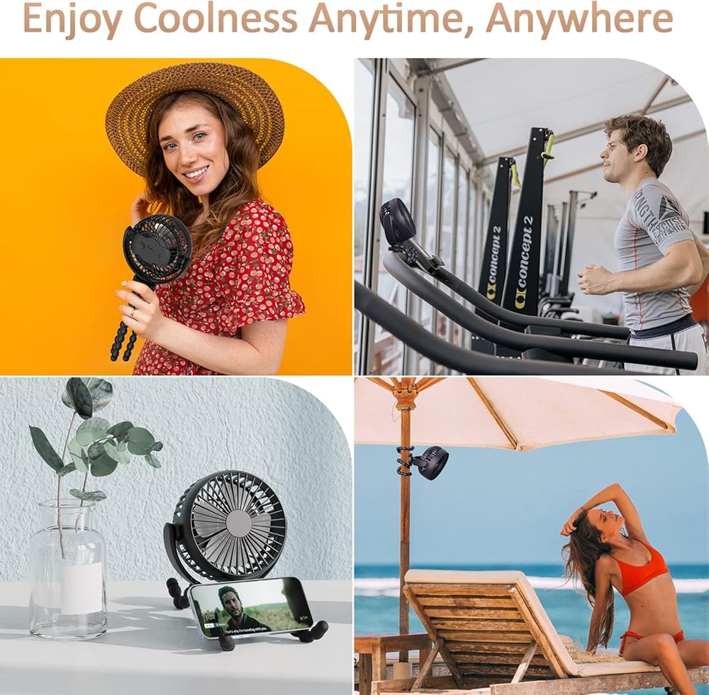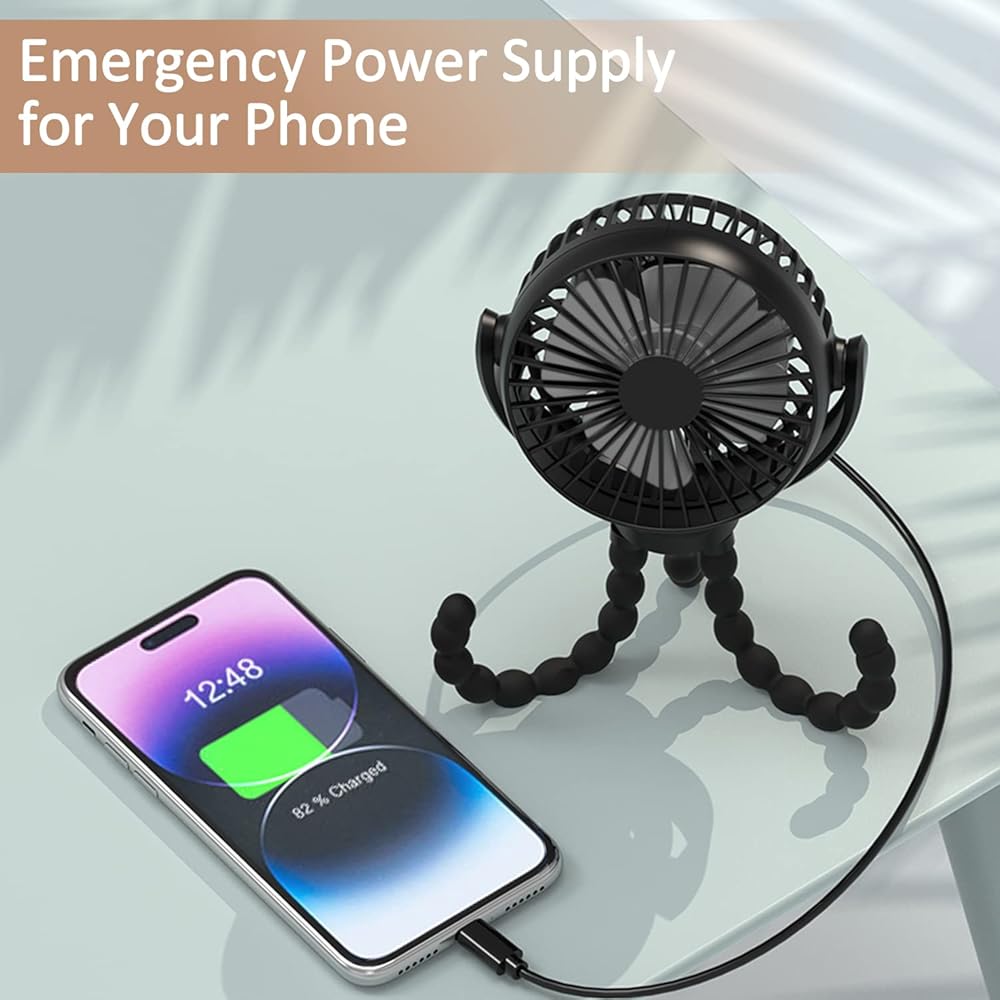 Flexible Stable Tripod This mini handheld stroller fan with lightweight design. The Stroller fan's Flexible Tripod is made of skin-friendly and safe silicone material that can be bent or folded on demand, and can be held tightly like an octopus claw in a variety of use scenarios, and can also be used as a mobile phone holder.