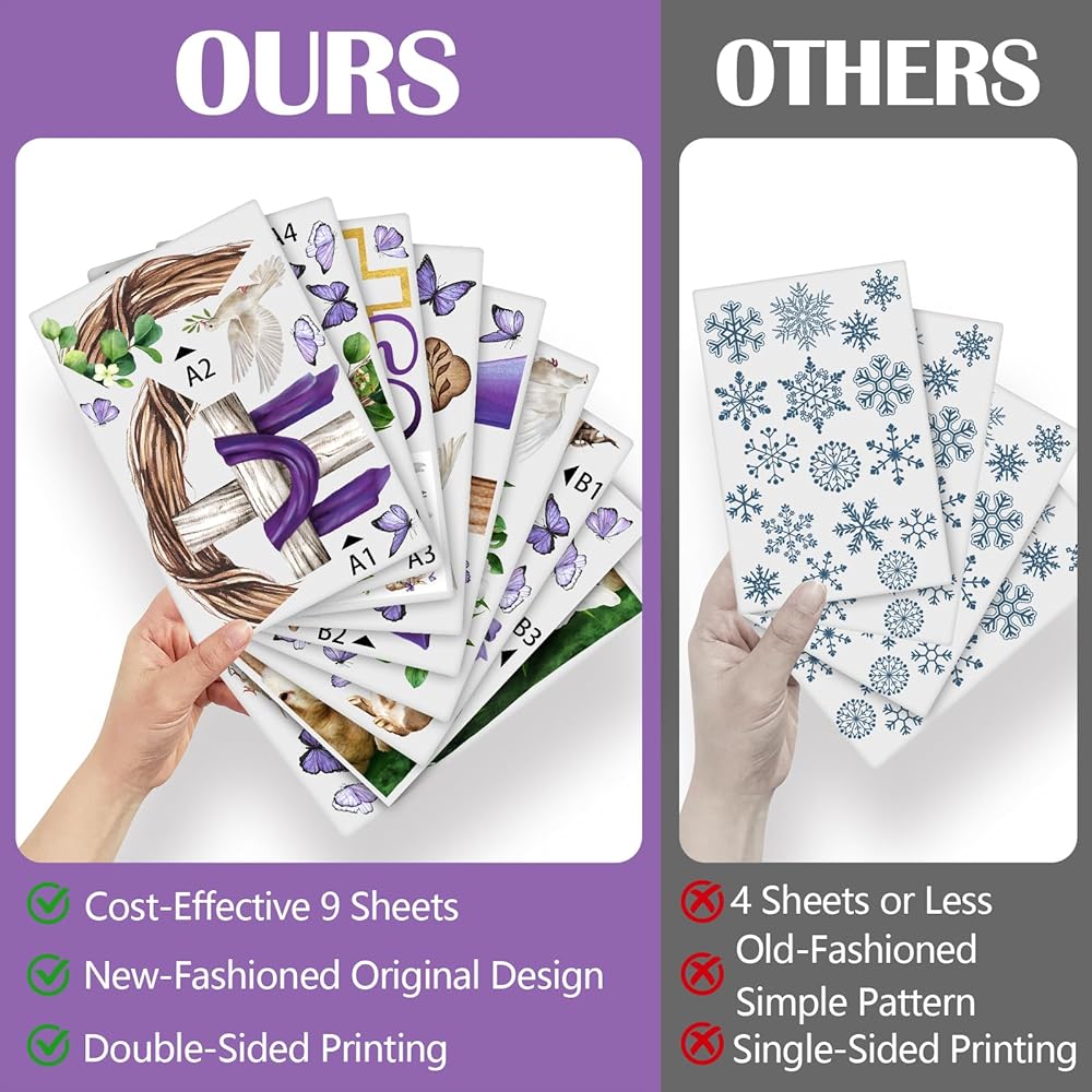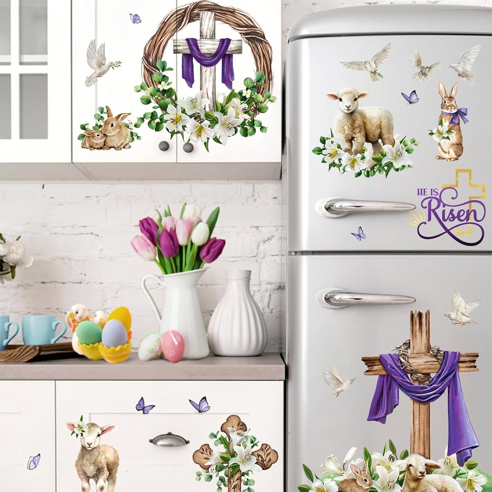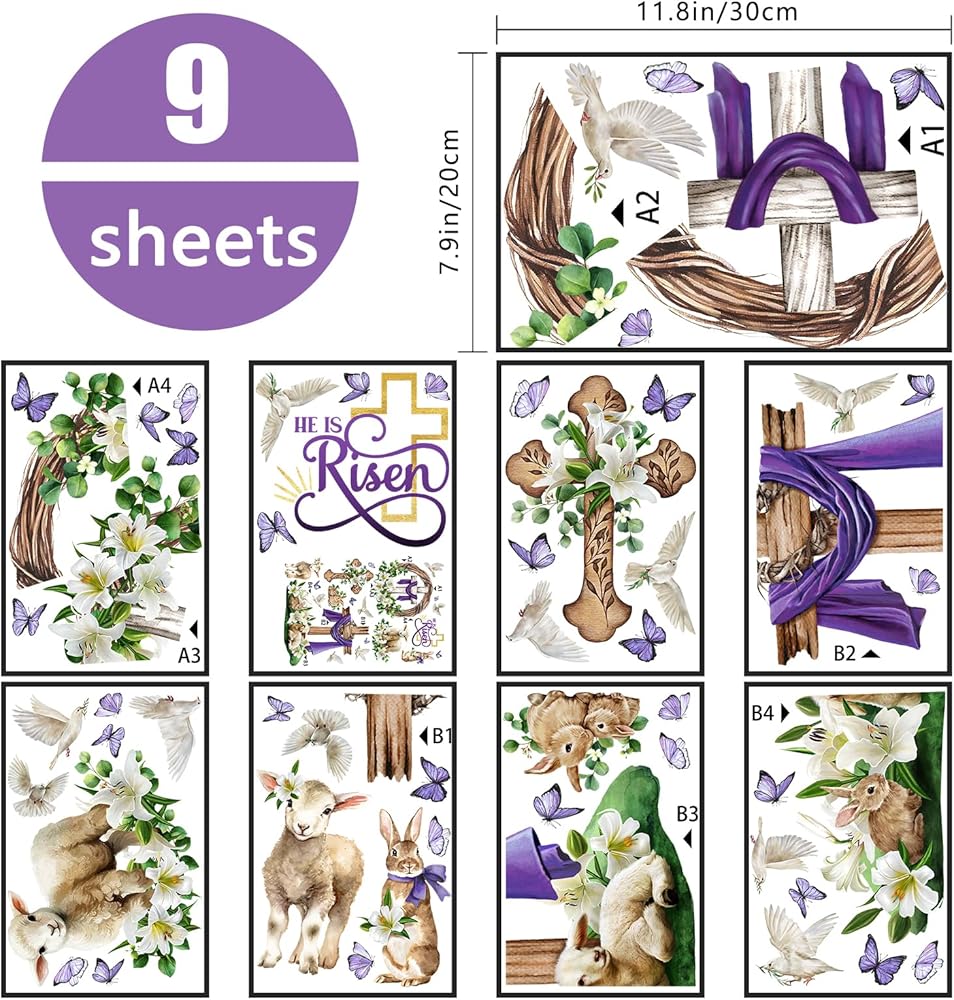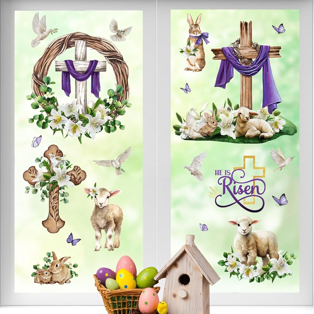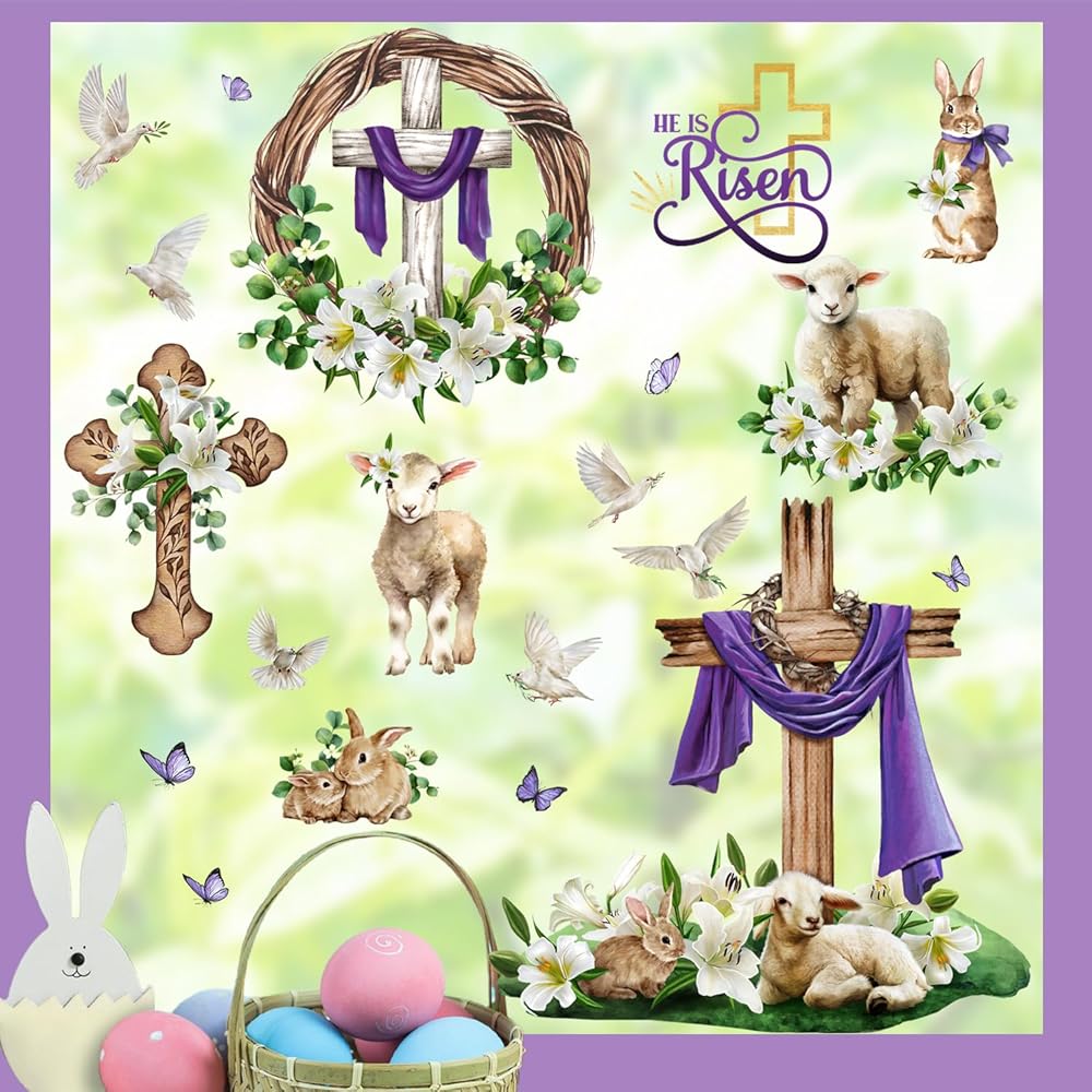 ديكور منزلي بدون لاصق: ديكورات نوافذ عيد الفصح هذه عبارة عن ملصقات ثابتة رفيعة، والتي لا تتطلب غراء أو شريطًا إضافيًا، ويمكن ربطها بسهولة بسطح أملس وجاف. ما عليك سوى إزالة ملصق النافذة ولصقه على سطح السيارات والشاحنات والزجاج والمرايا والنوافذ والأبواب الزجاجية المقاومة للتخريب وأسطح الحمامات؛ واستخدم بطاقة لإخراج فقاعات الهواء من الأعلى إلى الأسفل. من السهل تركيبها على نافذتك وإزالتها دون ترك بقايا لزجة