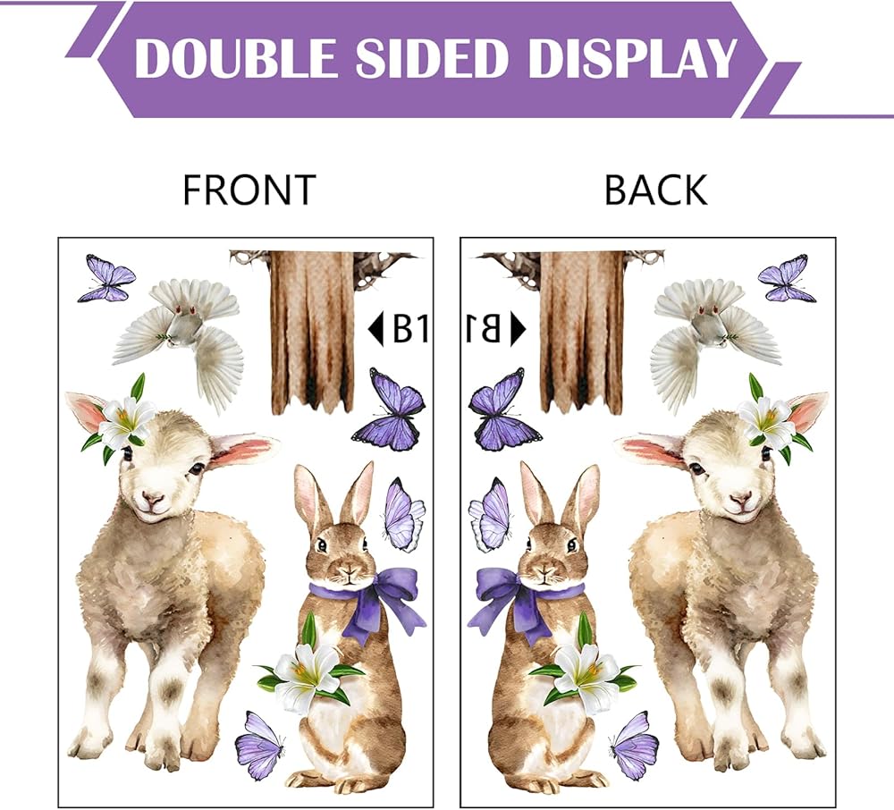 طباعة على الوجهين: ملصق نافذة عيد الفصح مصنوع من مادة PVC الموثوقة والمتينة، ولا يحتوي على رائحة كريهة ويعتمد تصميمًا على الوجهين. له نفس التأثير البصري من داخل وخارج النافذة، جميل وسخي، ويمكن استخدامه لفترة طويلة