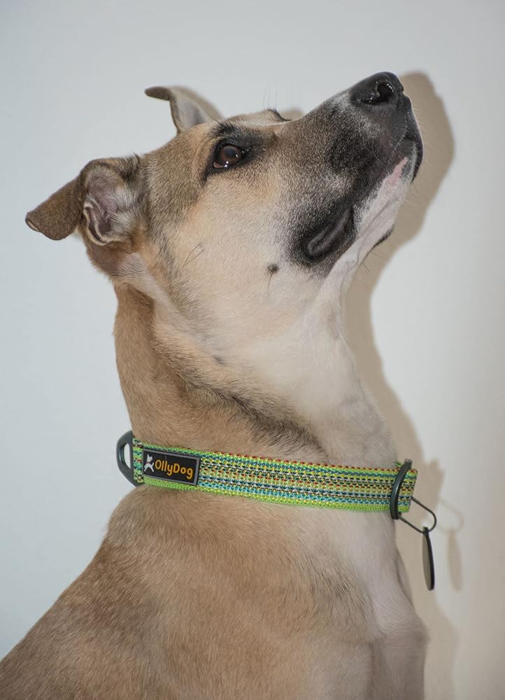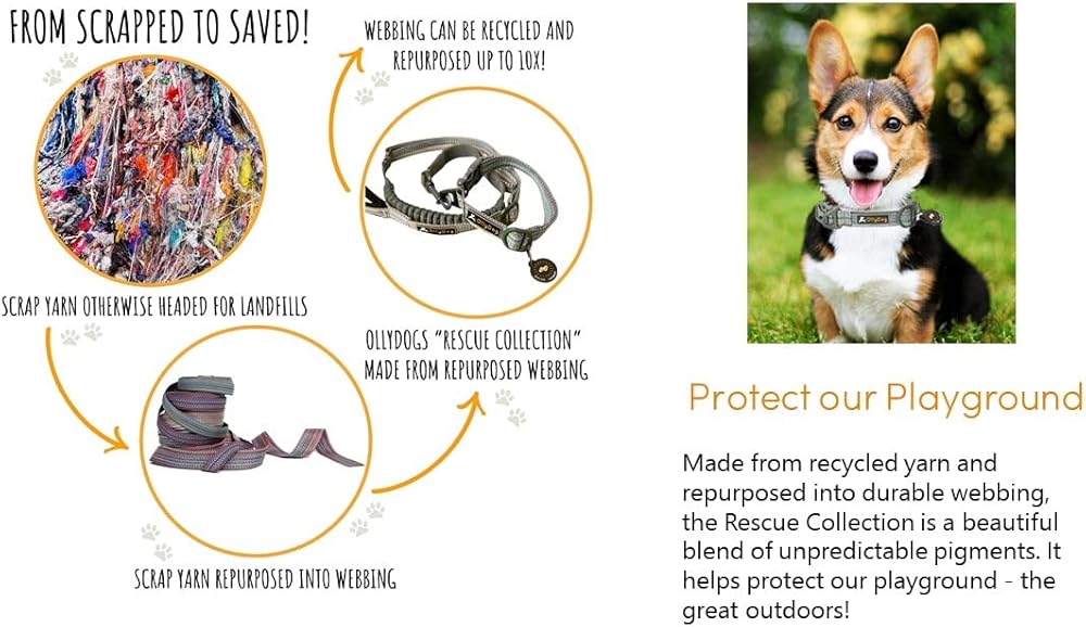 ميزات الياقة: طوق Rescue Martingale Mesa لا يحتوي على سلسلة. هذا طوق على طراز مارتينجال مصنوع بالكامل من حزام لطيف على كلبك ولكنه لا يزال يمنحك التحكم. توجد نقطة ربط منفصلة لبطاقة الهوية وكاتم صوت لعلامة السيليكون وهي ميزات قياسية في جميع أطواق OllyDog
