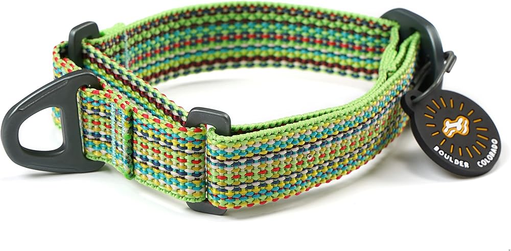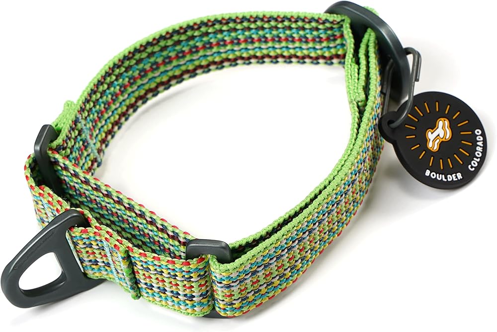 نمط معبر: مصنوع من خيوط معاد تدويرها ومعاد استخدامها في نسيج متين، هذا الطوق خفيف الوزن هو مزيج جميل من الأصباغ النابضة بالحياة. يمكنك إقرانه مع مقود الإنقاذ القابل للتعديل أو مقود الإنقاذ (يُباع بشكل منفصل) للحصول على مجموعة مطابقة