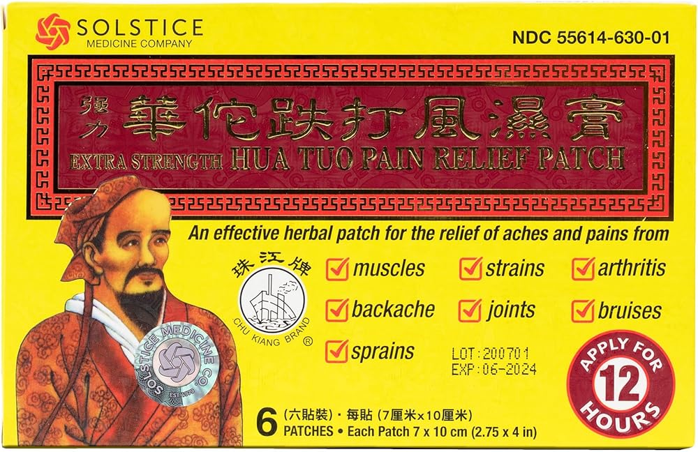 Since 1978, Solstice Medicine Company has been empowering people to stay healthy by offering quality Eastern and Western medicine to customers around the world. Work, play and the aging process can do a number on our bodies. Chu Kiang Brand Hua Tuo Extra Strength Medicated Plaster is a must-have item in your home to relieve minor pain such as back pain, muscle pain and pain resulting from sports injuries. Chu Kiang Extra Strength Brand Hua Tuo Medicated Plaster is the perfect ally for sports lovers who occasionally suffer from minor aches and pains and muscle pain, and is recommended for use after your workout or workout. Unlike pills or prescriptions, Chu Kiang Brand Extra Strength Hua Tuo Medicated Plaster provides direct relief to the affected area of the body without having to worry about the harsh effects that regular medications can have on the digestive system and stomach. . Apply the adhesive patch to the affected area and it will do the rest. Extra strong formula enriched with camphor Helps relieve: * Muscle aches and pains. * Back pain and other body pain resulting from sports injuries, sprains, strains and bruises. * Pain from torn or pulled muscles where there is swelling, heat and inflammation. * Chronic tendinitis pain that is aggravated by heat. How to use: Adults and children 2 years of age and older: Remove the transparent film backing and apply plaster to the affected area no more than 3-4 times a day. The plaster will remain effective for 24 hours and will be even more effective when used after a bath. Children under 2 years of age: do not use. Consult a doctor.