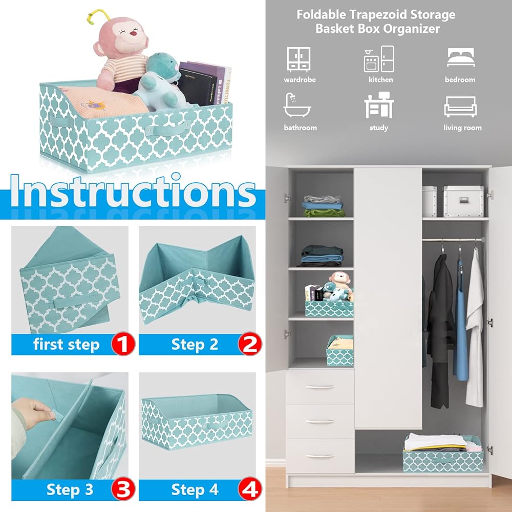 تصميم شبه منحرف - تصميم شبه منحرف يجعل العثور على الأشياء أمرًا مريحًا، كما يسمح بسهولة الوصول إليها عند وضعها على أعلى الرف. الحجم هو 19.7 بوصة طول * 11.2 بوصة عرض * 8.3 بوصة ارتفاع