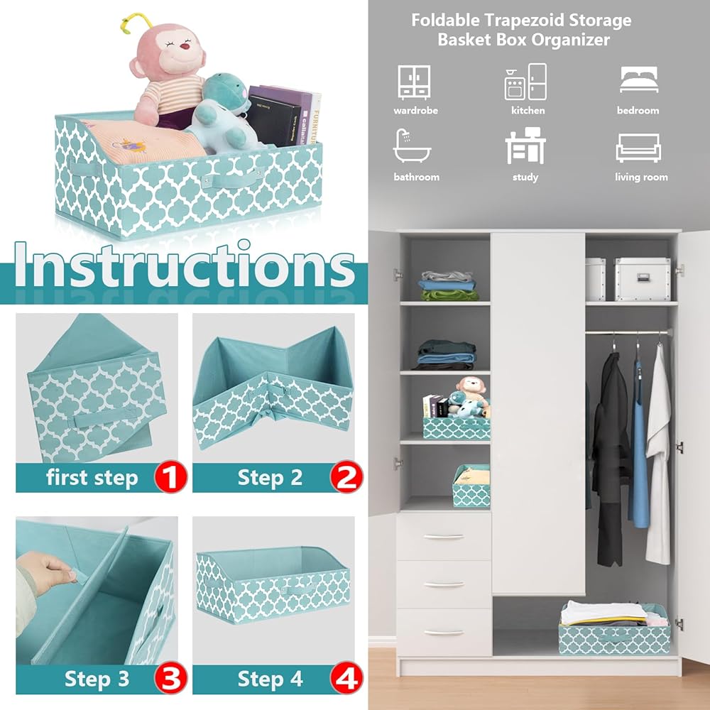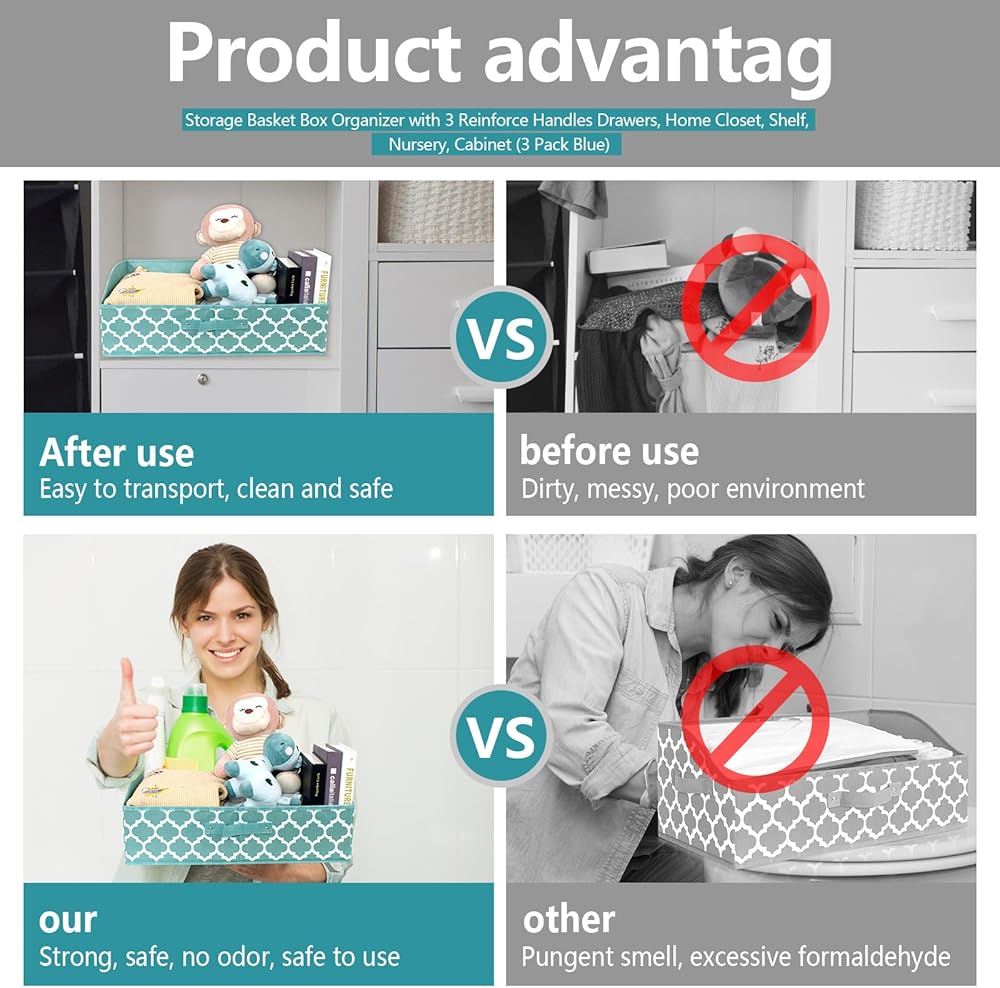 3 مقابض قوية - مقابض أمامية معززة ومقبضين جانبيين تسمح بنقل منظم الخزانة بسهولة، صناديق التخزين القابلة للطي توفر المساحة عند عدم الاستخدام، ويمكن طيها بشكل مسطح لسهولة التخزين.