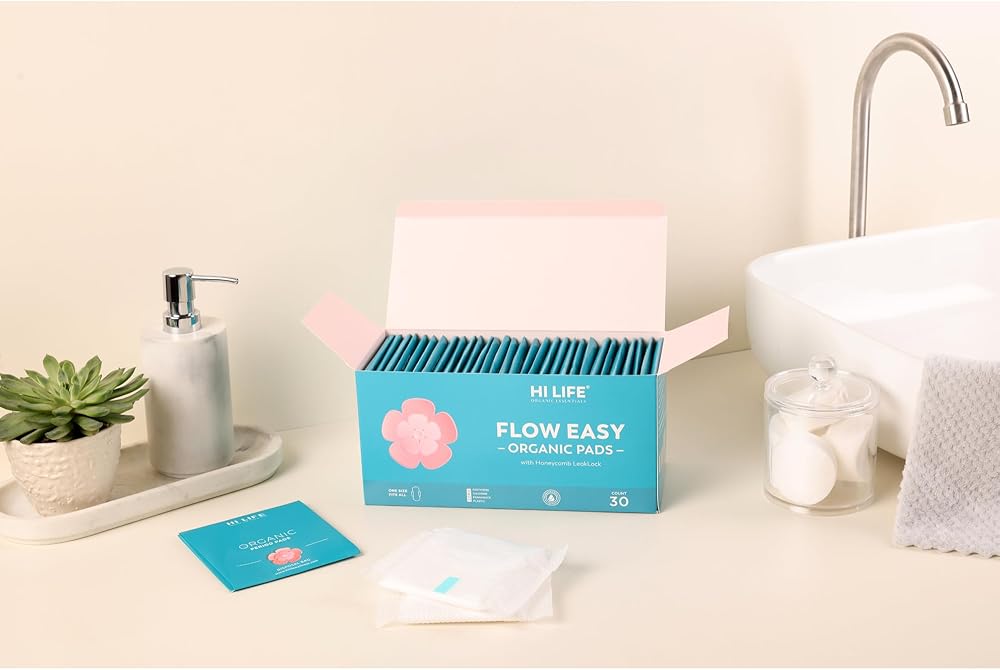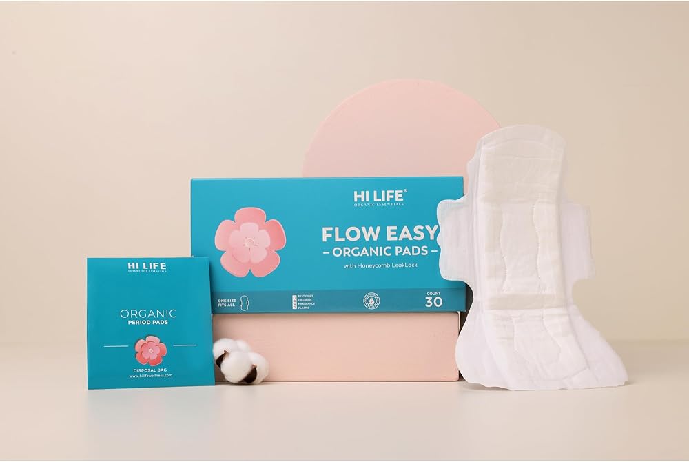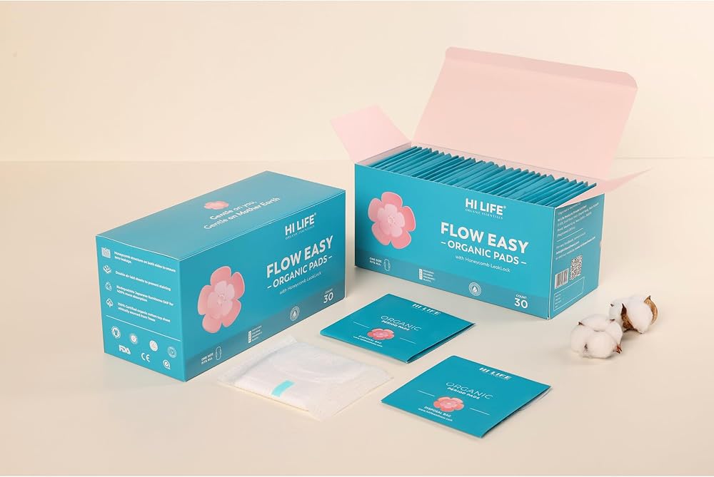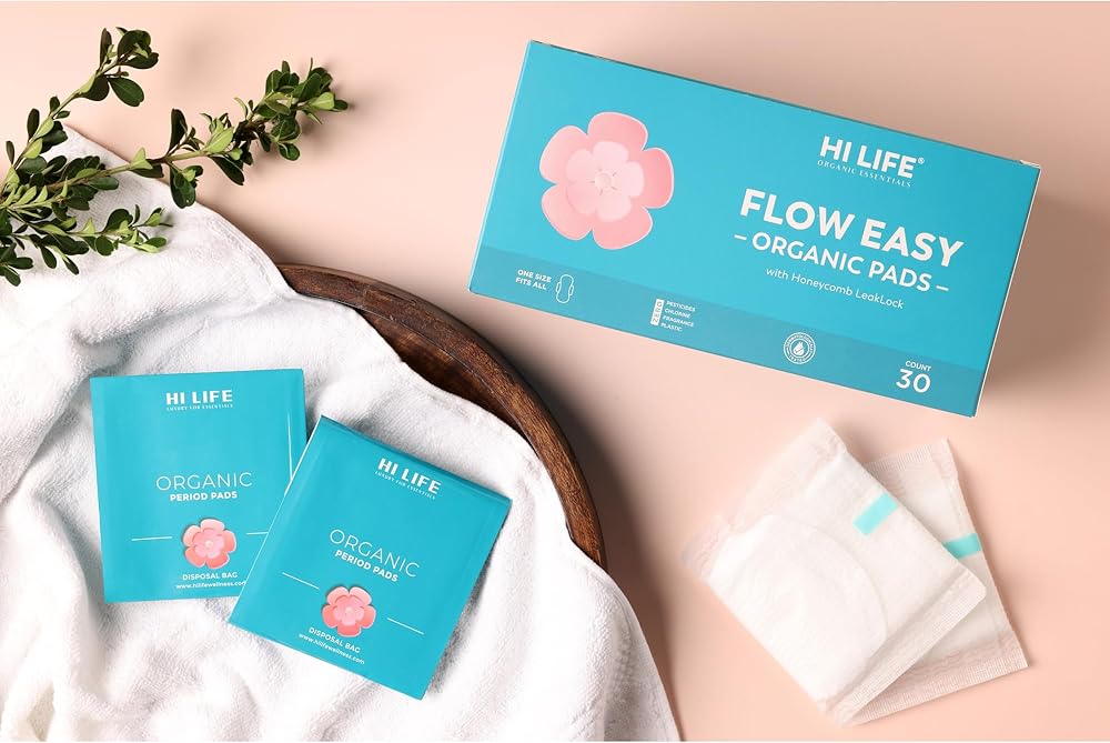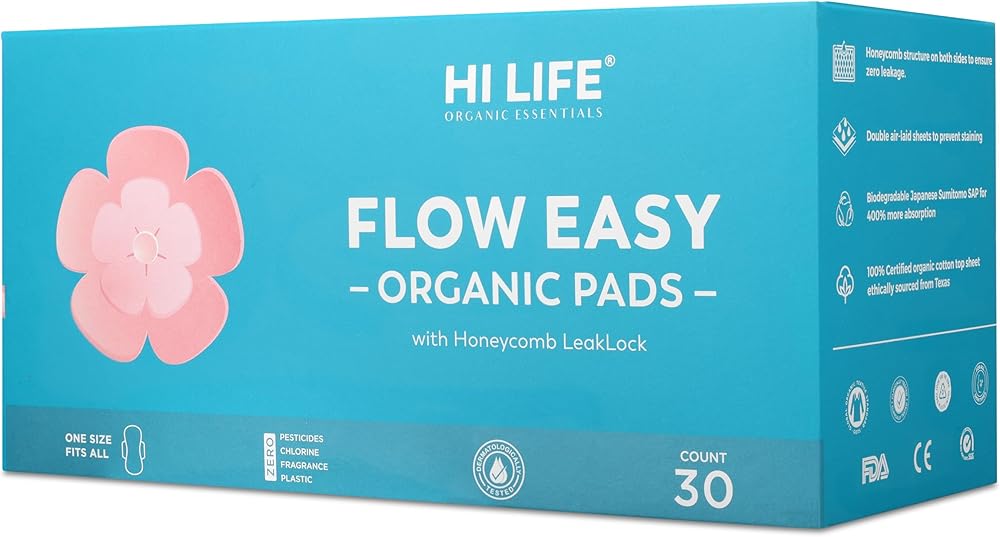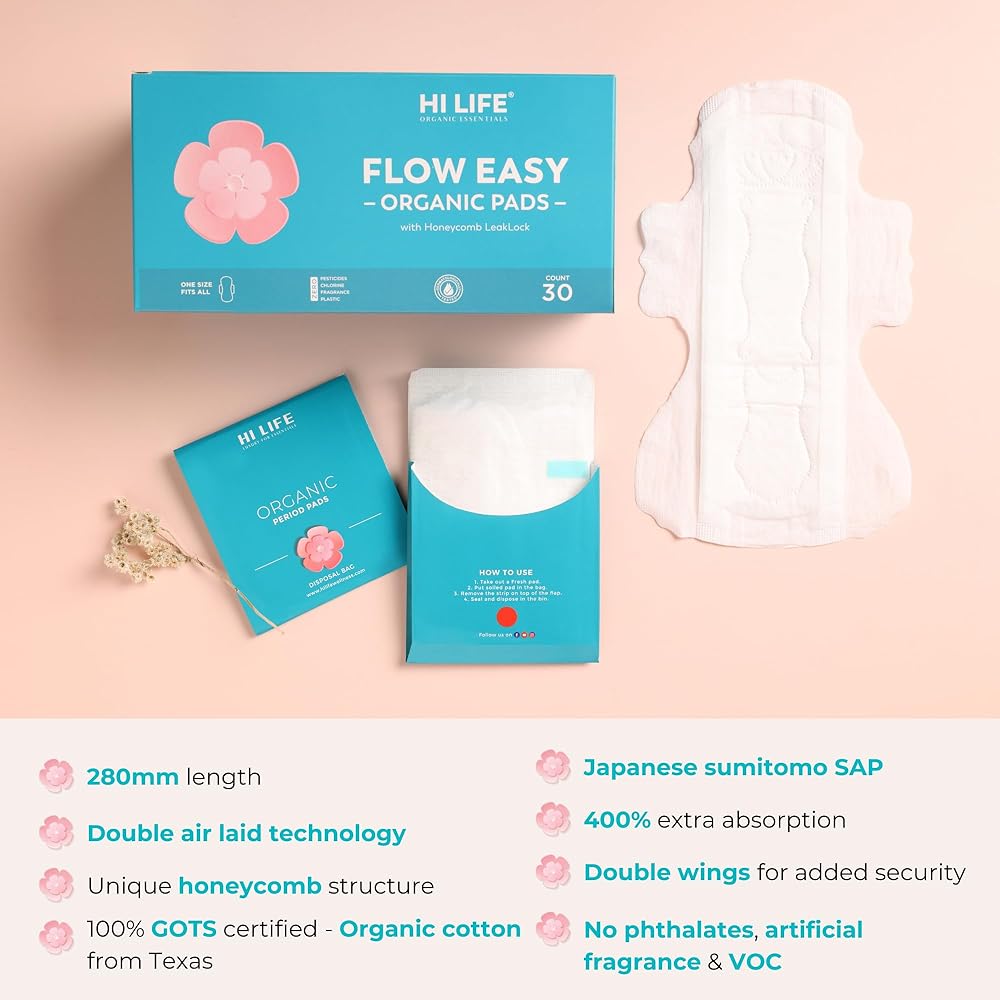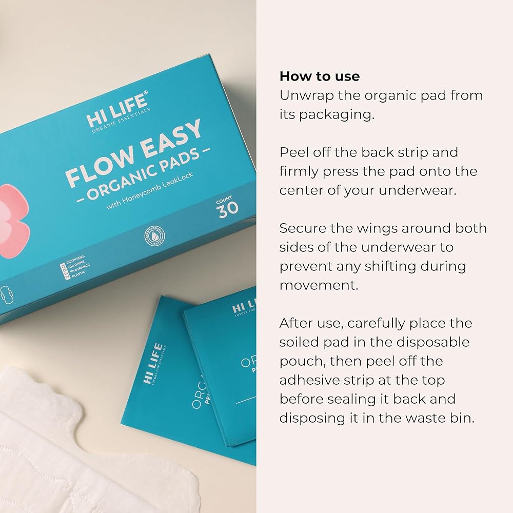 هاي لايف فوط عضوية | فوط صحية | فوط للنساء | بين عشية وضحاها والتدفق الثقيل | فائقة الامتصاص مع كيس التخلص من النفايات القابل للتحلل البيولوجي وهيكل قفل فريد على شكل قرص العسل لفترات خالية من الطفح الجلدي - عبوة من 30 قطعة