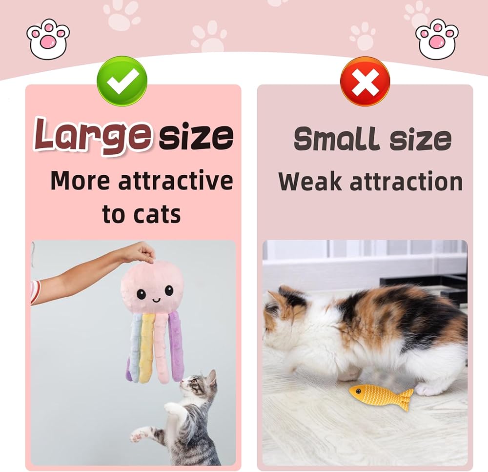 • محتويات العبوة: سوف تحصل على لعبتين من النعناع البري للقطط التي يبلغ ارتفاعها حوالي 8.3 انش، وهي أحدث أشكال أشكال الأخطبوط اللطيفة للغاية. بالإضافة إلى ذلك، هناك أيضًا عشر كرات من النعناع البري لوضعها في لعبة الأخطبوط لجذب انتباه القطط.