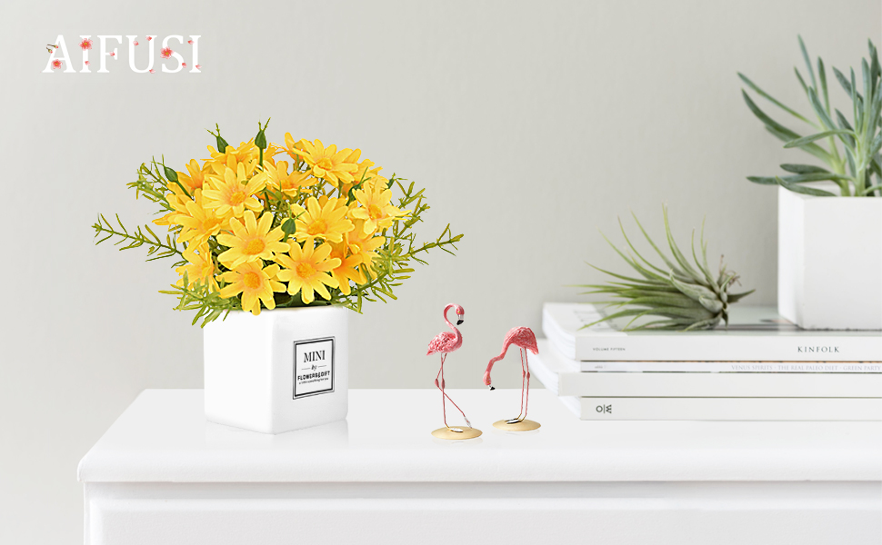 𝗘𝗮𝘀𝘆 𝘁𝗼 𝗖𝗮𝗿𝗲 - زهرة الأقحوان محمية من الأشعة فوق البنفسجية ومتينة للغاية. كل ما عليك هو المسح بقطعة قماش جافة عندما تكون مغبرة ولا داعي للقلق بشأن عدم وجود وقت للري.