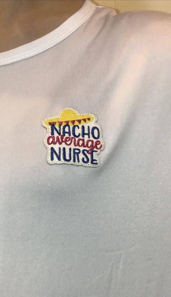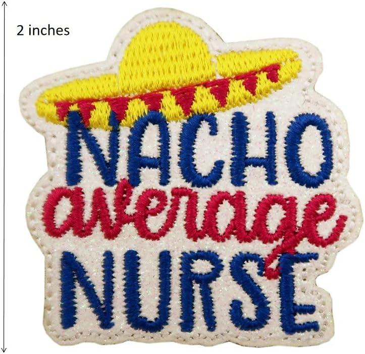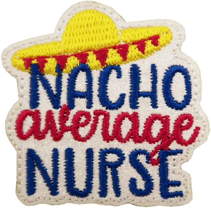 Show your humor and pride as a nurse with this nacho average nurse embroidered iron on patch