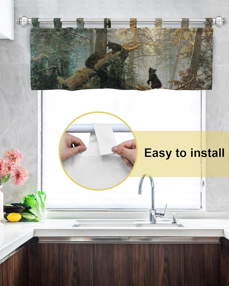 This black top curtains valance suitable for kitchen, den, hallway window, dining room, bedroom, living room, bathroom, study Room, basement, nursery, coffee store, gift store or other place