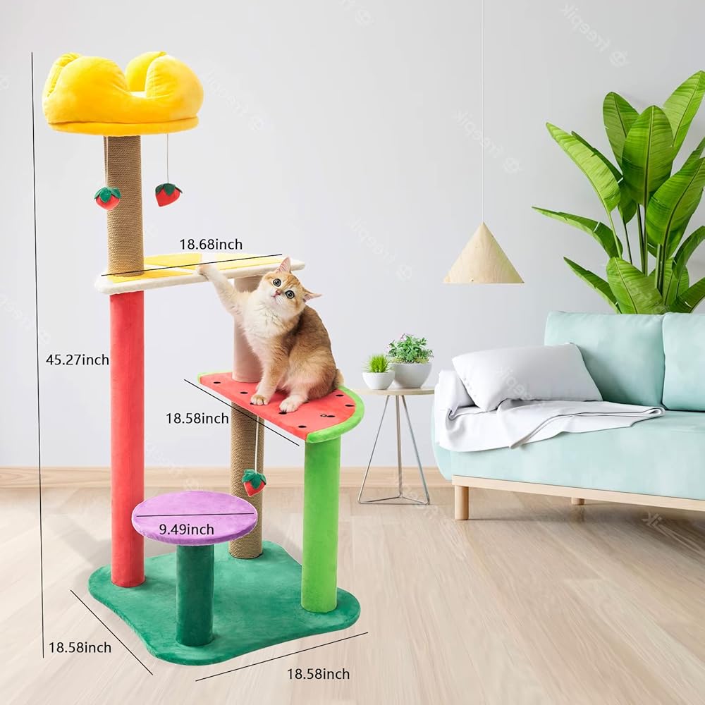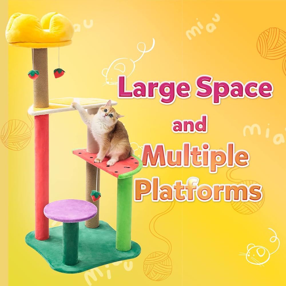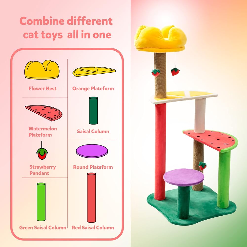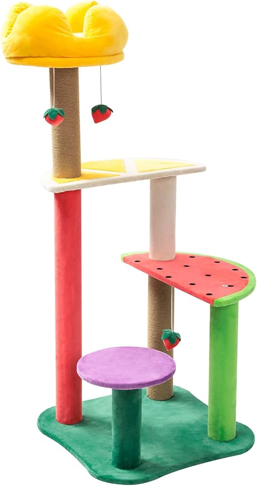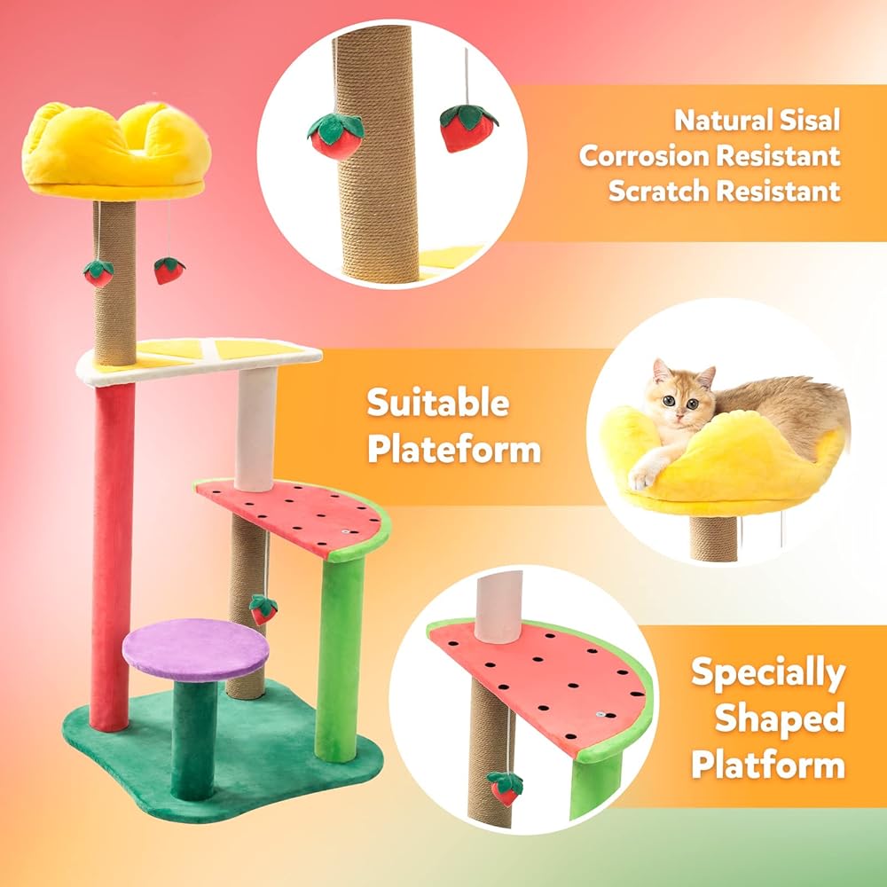 برج للقطط على شكل شجرة للقطط الداخلية مع أعمدة خدش مغطاة بالسيزال ومنصة على شكل فاكهة، اثاث مركز نشاط برج القطط متعدد المستويات للقطط والحيوانات الاليفة من دوكال