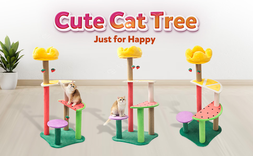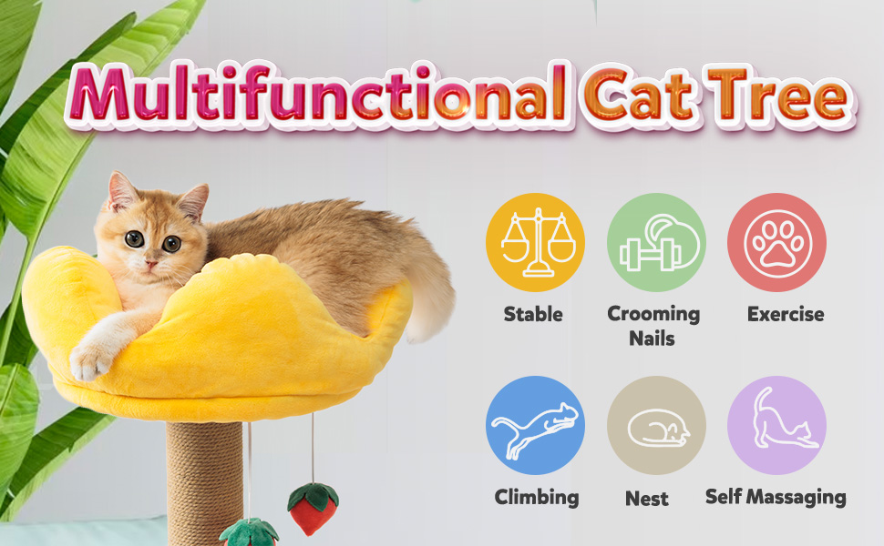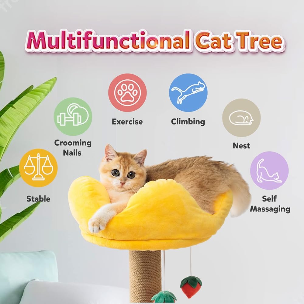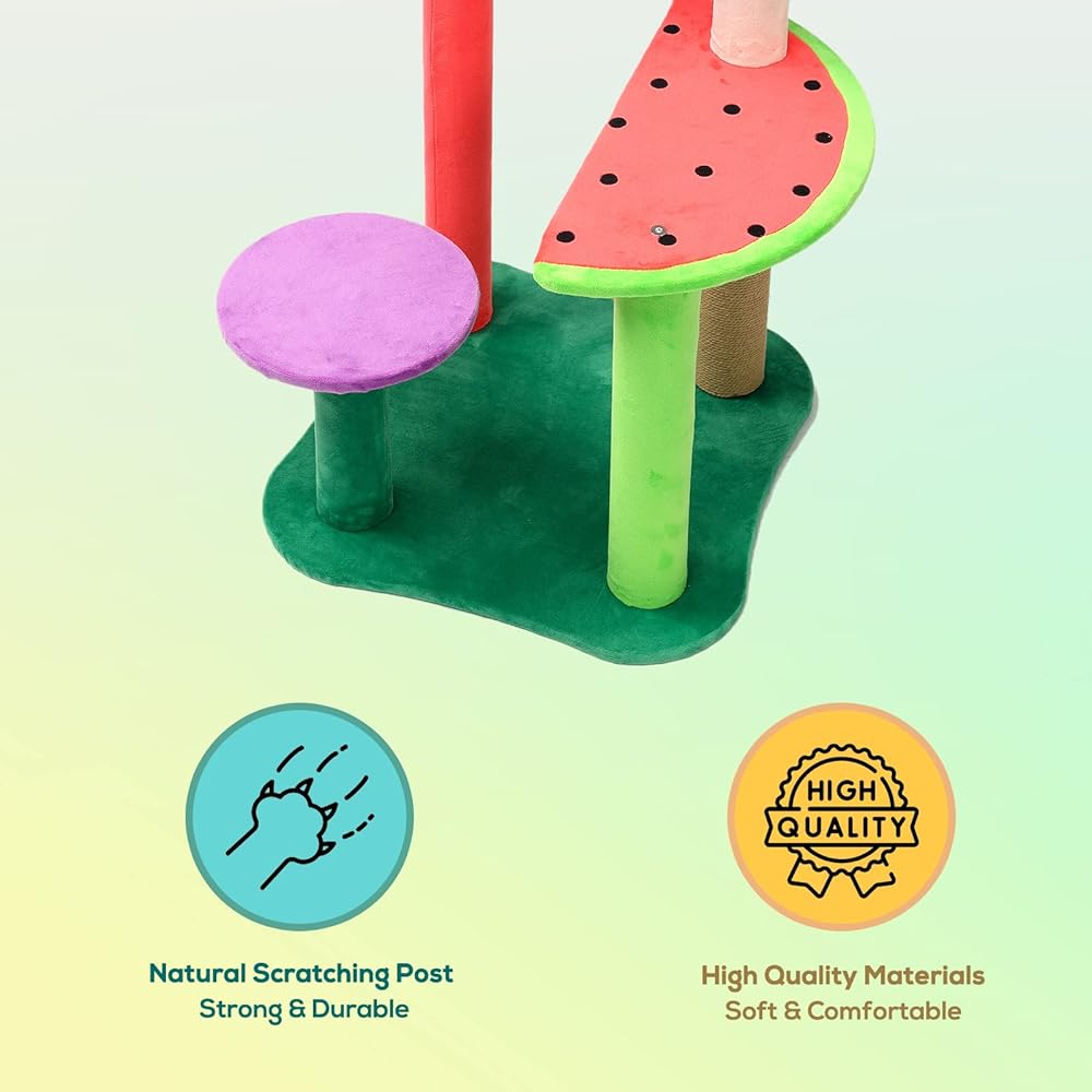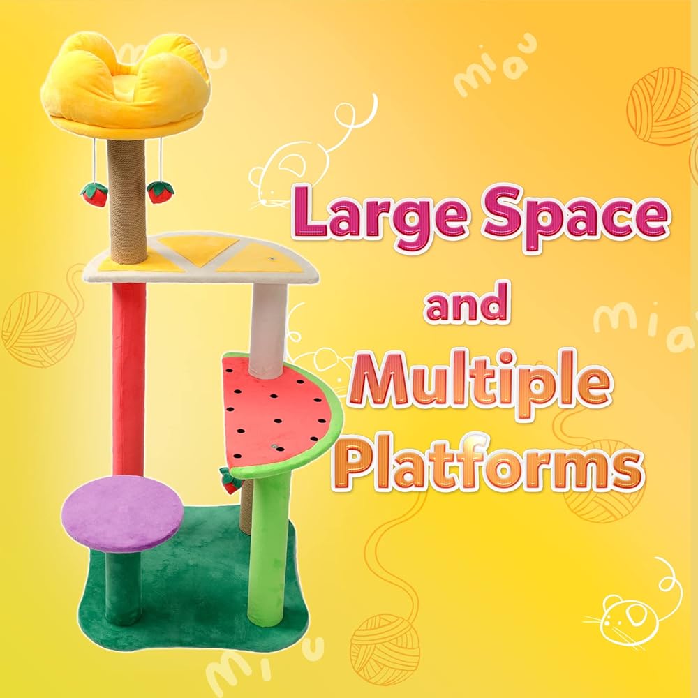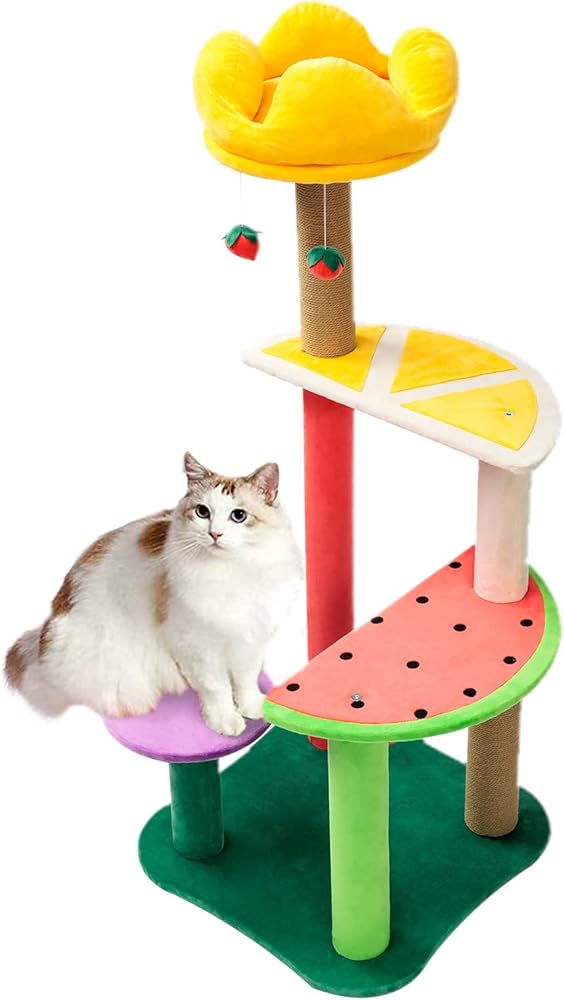 برج للقطط على شكل شجرة للقطط الداخلية مع أعمدة خدش مغطاة بالسيزال ومنصة على شكل فاكهة، اثاث مركز نشاط برج القطط متعدد المستويات للقطط والحيوانات الاليفة من دوكال