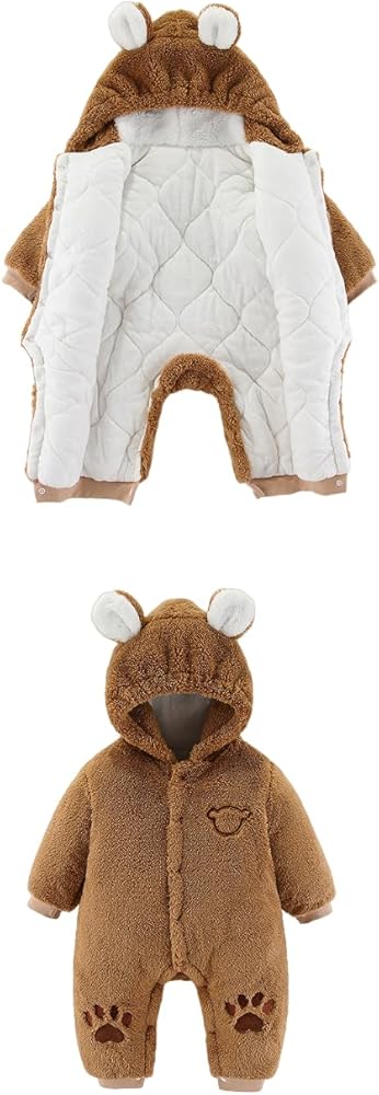 This baby jumpsuit is made of 100% soft cotton, which is very gentle on the baby's skin. It has long sleeves and legs to protect the baby from cold winds. The jumpsuit has a hood to keep the baby's head warm. It has buttons for easy dressing and diaper changes. This jumpsuit is perfect for winter and can be worn as a standalone item or as a layer over other clothes. Baby jumpsuits are a wardrobe essential for every baby. They are not only cute but also practical and convenient to wear. Baby jumpsuits are perfect for all occasions, whether it's a special occasion or just a day at home.