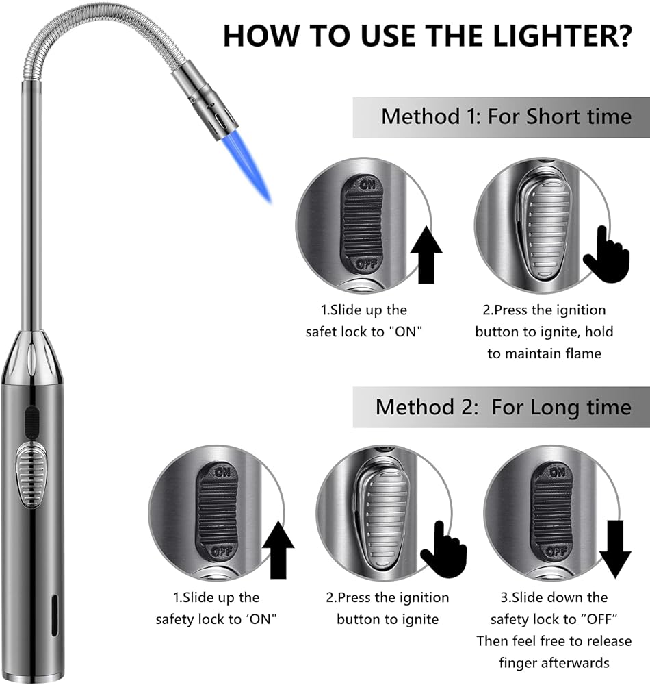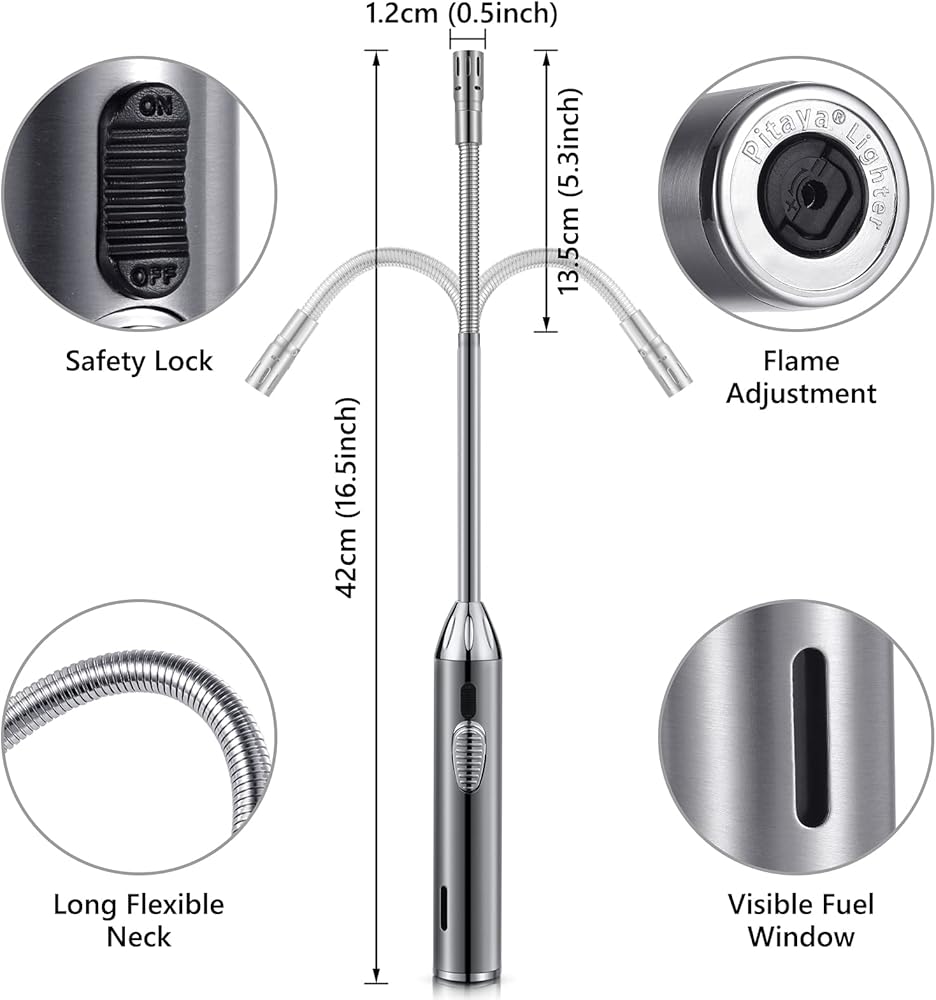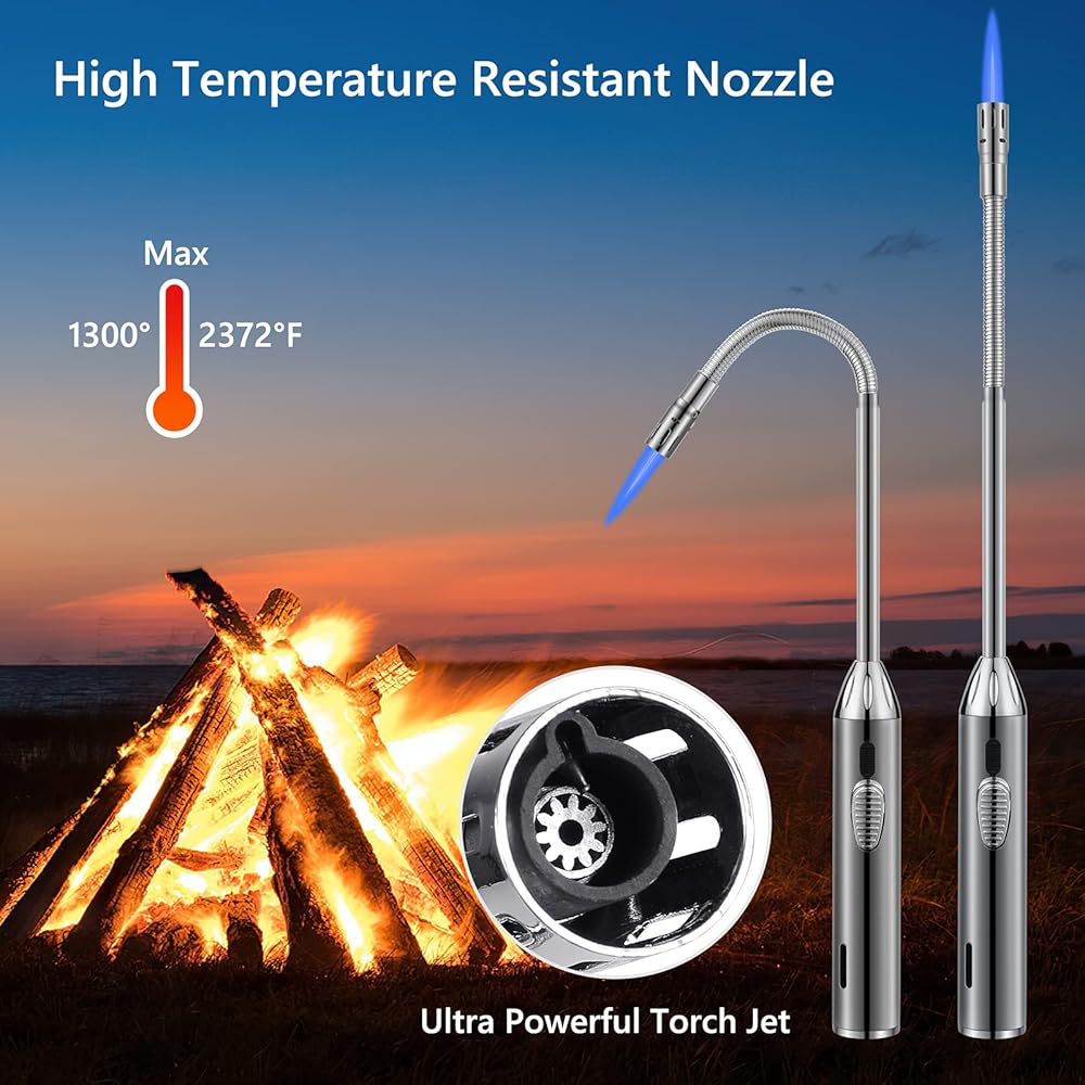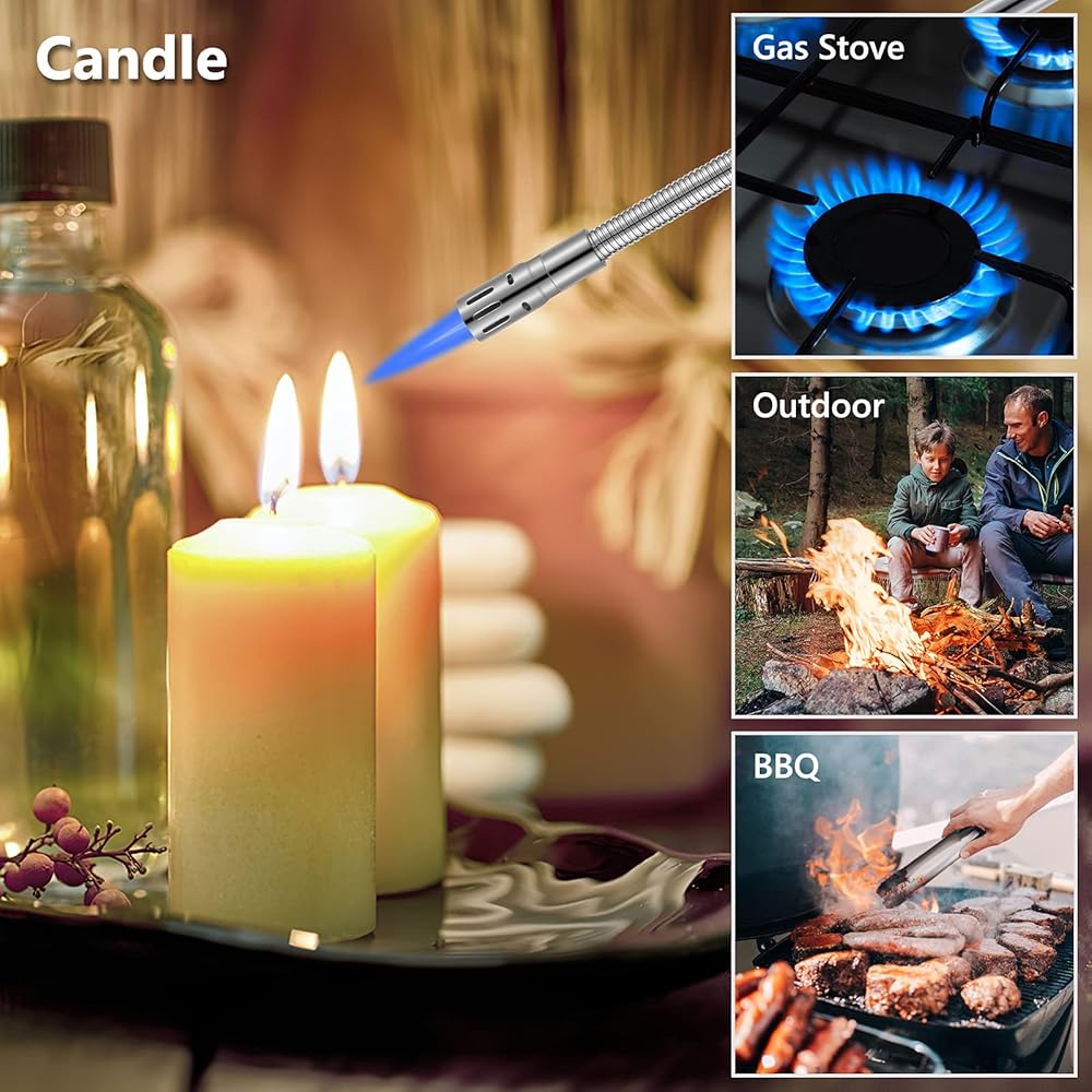 🔥 ولاعة طويلة مرنة: يبلغ طول ولاعة البوتان بونفاير 16.5 انش، ورأس من خليط معدني من الزنك + أنبوب مستقيم من الستانلس ستيل + خرطوم حديدي معدني، مصنوعة من مواد عالية الجودة. لهب أزرق فاتح، تصميم مقاوم للرياح، رقبة طويلة مرنة 360 درجة يمكن أن تدور وتنحني إلى زوايا مختلفة، تحمي يديك من الاحتراق عند الإضاءة. مناسبة جدًا للاستخدام كولاعة للشموع، ولاعة شواء، ولاعة موقد غاز، ولاعة مدفأة، ولاعة فحم إلخ (تباع بدون بوتان)