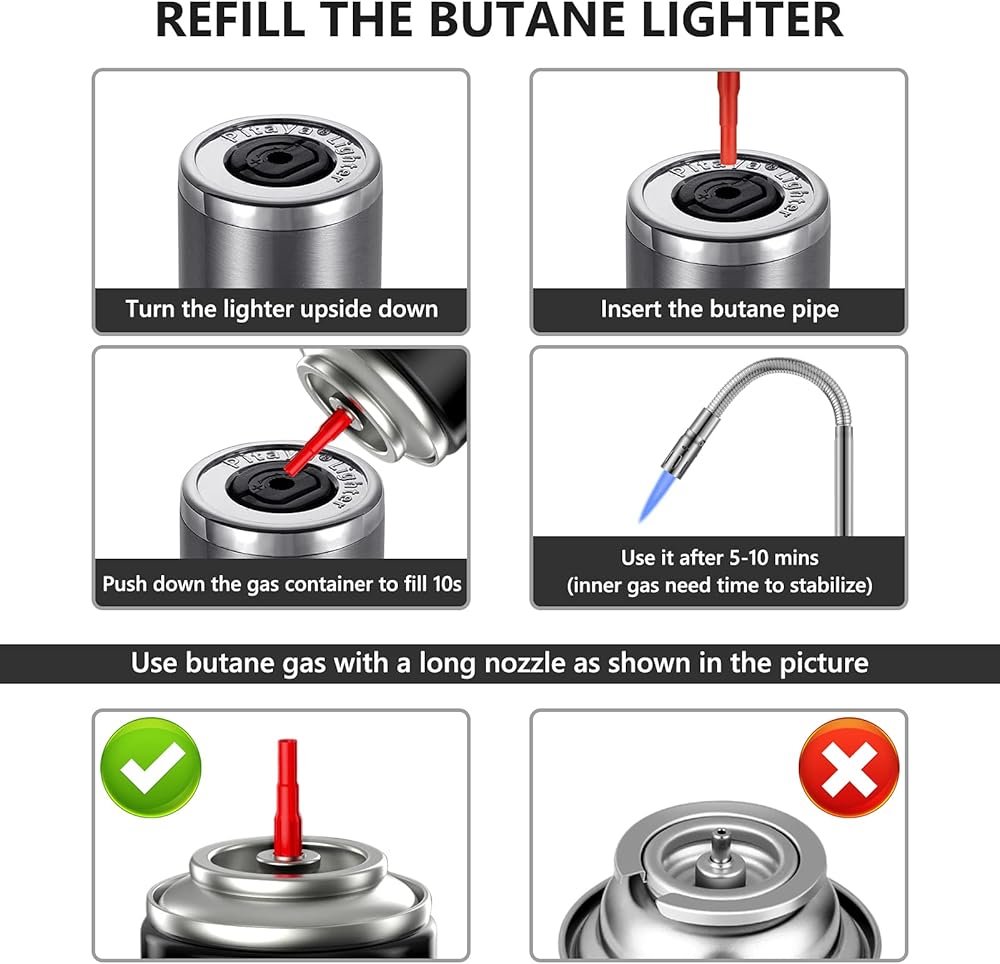 - وقود البوتان غير متضمن. بعد استلام الولاعات، تحتاج إلى شراء وتعبئة البوتان بنفسك.