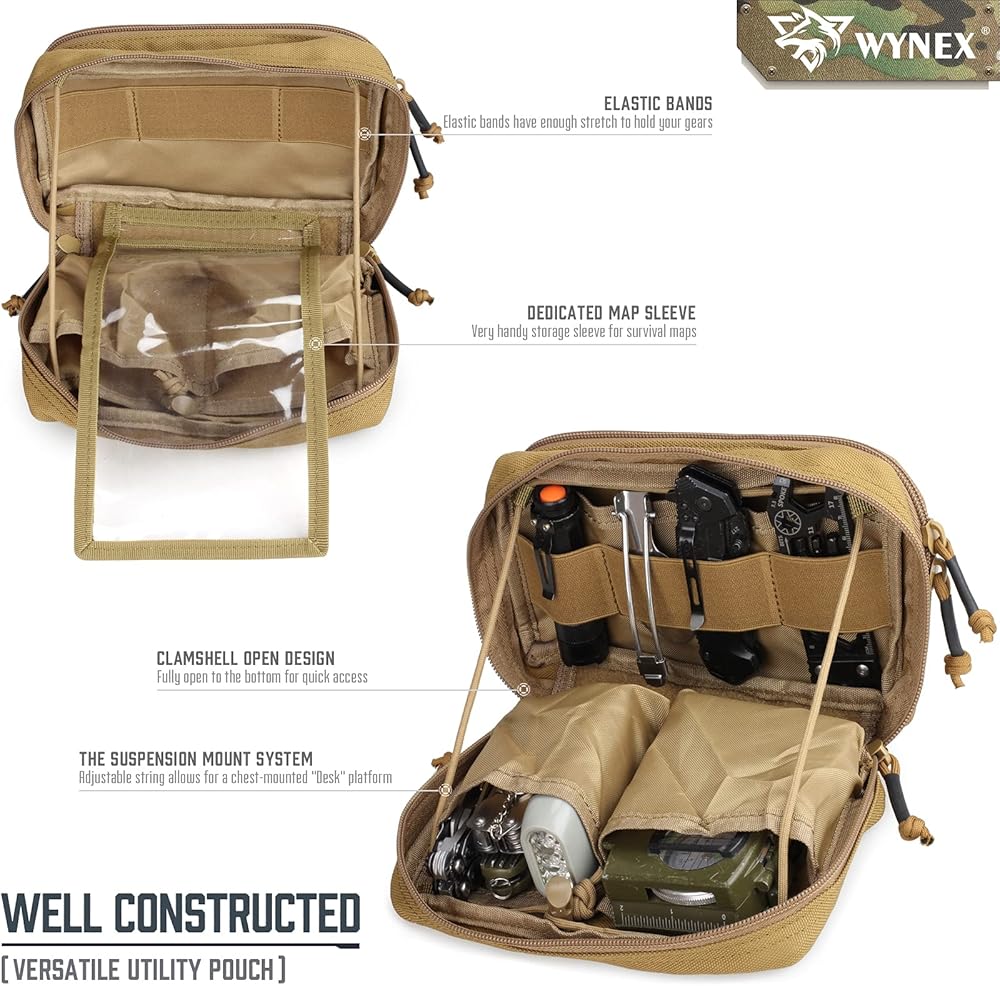 Tactical EDC pouch constructed with bigger space, more functions, loop panel for patches, and extra rows of webbing. Perfect for someone looking for a lightweight way to organize their EDC every day carry stuff, tools, travel essentials, first aid kits, fire starter kit., etc