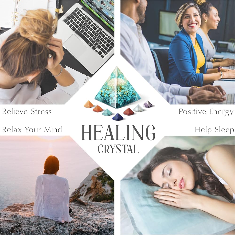 【كريستال علاجي】هرم أورجون مصنوع من كريستالات علاجية وراتنج. يحتوي الكريستال الطبيعي على طاقات مهدئة تغذي الجهاز العصبي، وتقلل من التوتر والتهدئة، وتنظف العقل النفسي الداخلي وتريح جسمك.