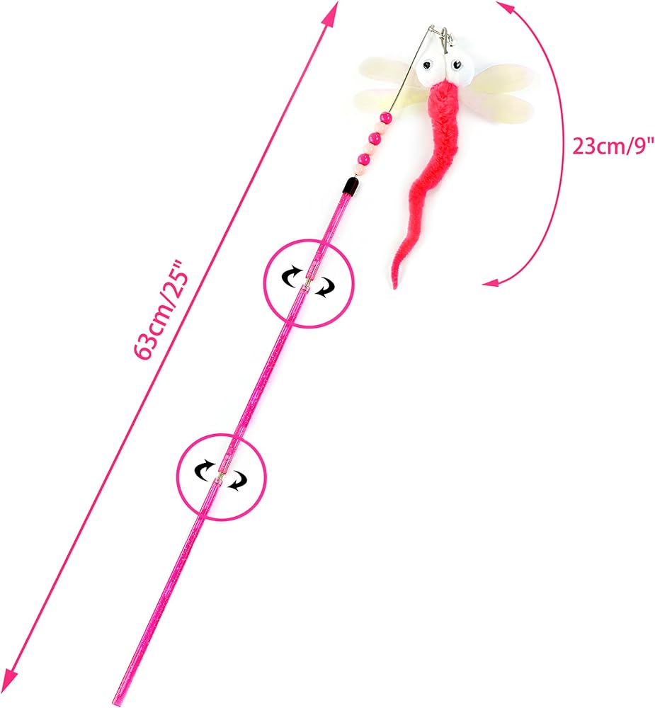 هذه عصا للقطط من تصميم وتصنيع شيوافا. لقد صنعنا عصا قابلة للسحب من 9.3 انش إلى 17.3 انش إلى 25 انش، سهلة التخزين والحمل. عصا حشرات للقطط اليعسوب بتصميم ملون. اجذب المزيد من الاهتمام لحيوانك الأليف. أجنحة ليزر، تصميم جرس وخرز، تحفز معظم غرائز الصيد لدى قطتك. يمكن استخدامها للعب المستقل في الأماكن المغلقة واللعب التفاعلي.