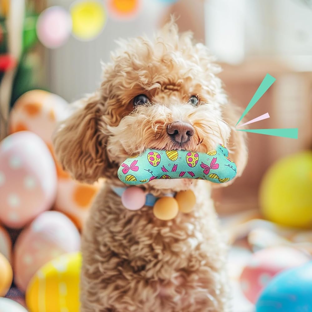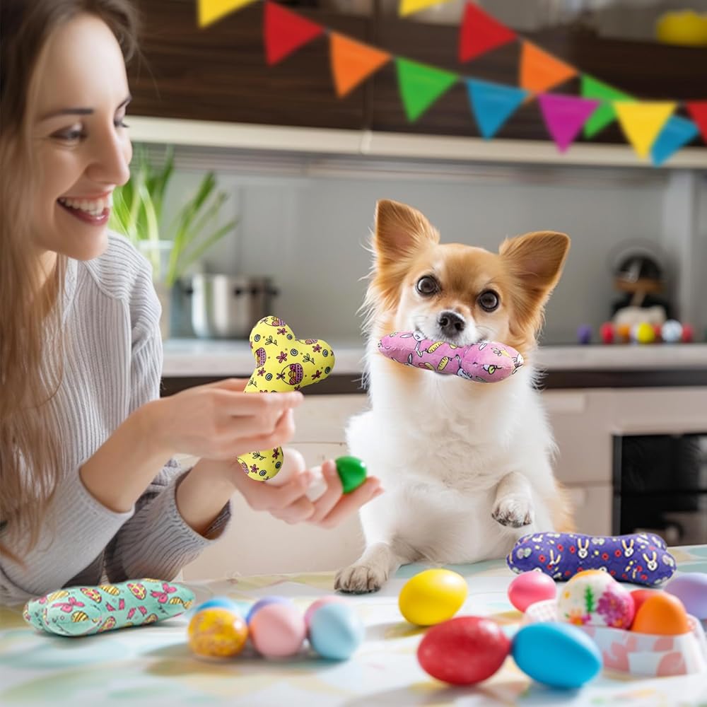 ألعاب كلب عيد الفصح ، 4 عبوات ألعاب الكلب العظم الفخمة ، هدايا كلب عيد الفصح التفاعلية للكلاب الصغيرة والمتوسطة