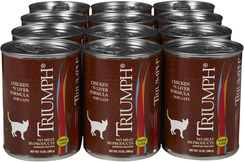 طعام القطط المعلب بالدجاج والكبد من تريومف، علبة 12 كيس، 13.2 أونصة.