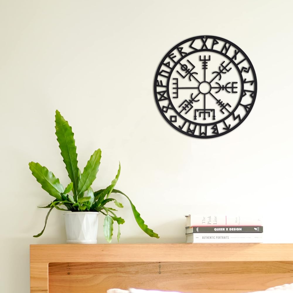 🧭 Unique Design: Our metal Viking Wall decoration is designed according to traditional Icelandic symbols, the main color is black; make the wall or room more artistic and will impress your friends and neighbors