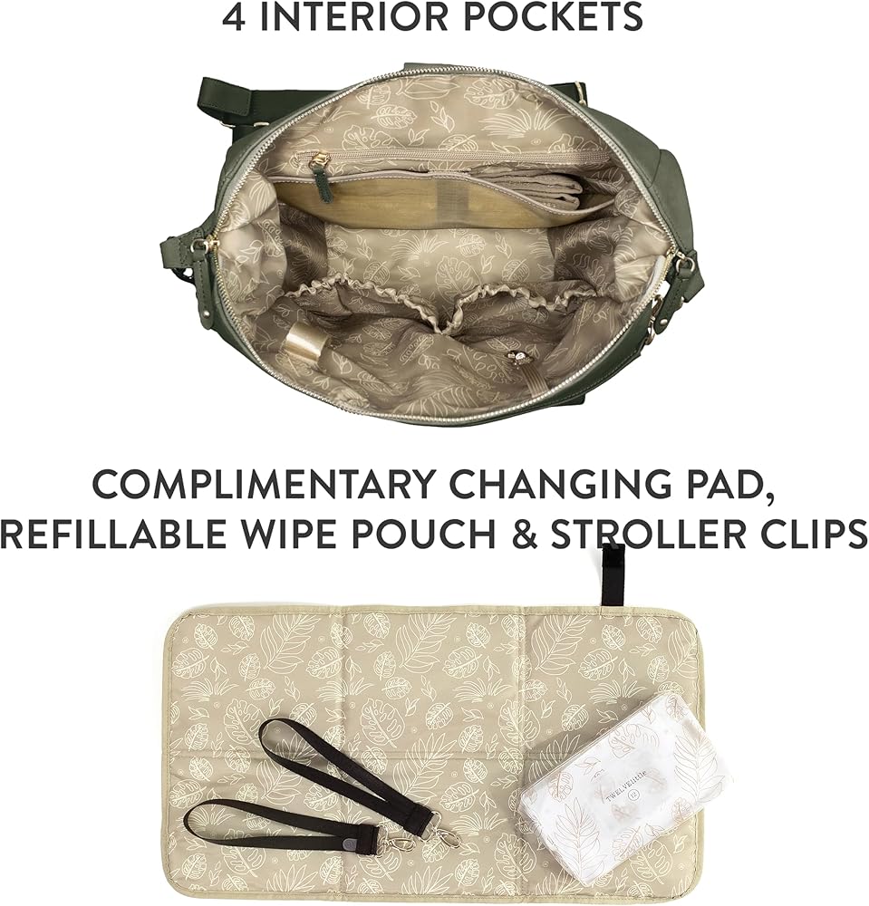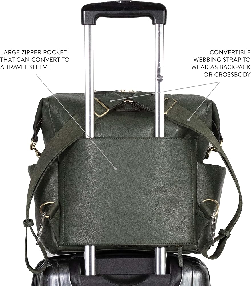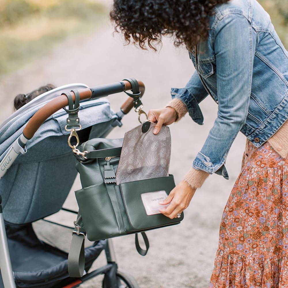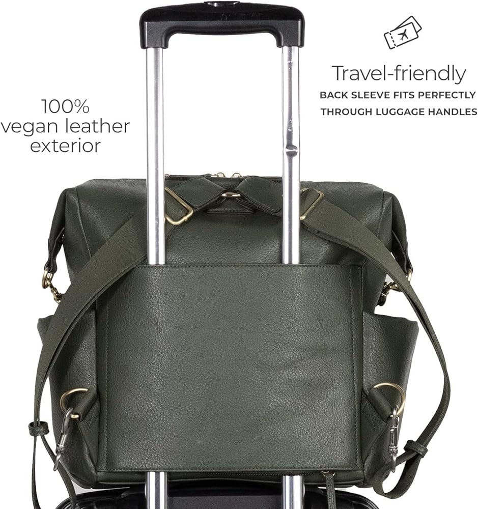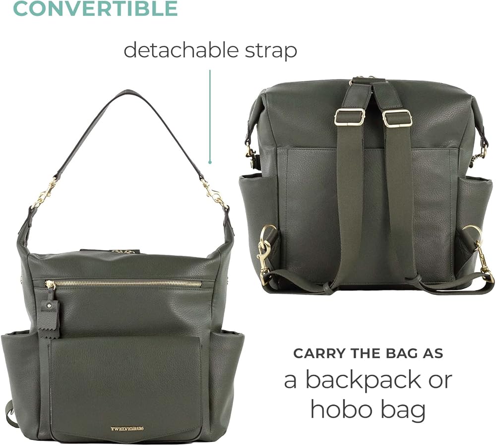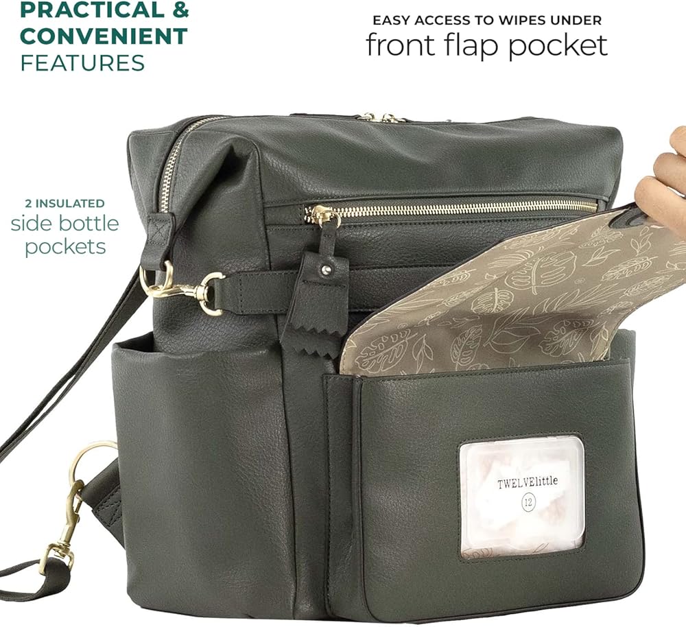 حقيبة ظهر TWELVElittle Peek A Boo للحفاضات قابلة للتحويل مع وسادة تغيير وحقيبة مناديل ومشابك لعربة الأطفال، جلد نباتي