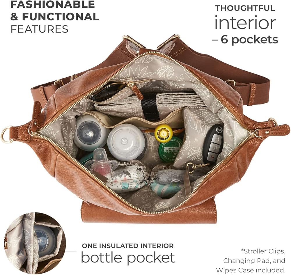 • Pack Everything You Need, Anywhere You Go: Designed with thoughtful interior and exterior functionality; Featuring multiple pockets, insulated bottle pockets, a front mag snap wipe pocket with opening for wipe pouch (Included), and a travel-friendly back sleeve that fits through luggage handles. 10 pockets total: 5 exterior pockets and 5 interior pockets. One interior insulated bottle pocket with mag snap flap closure to keep bottles warmer or cooler for longer